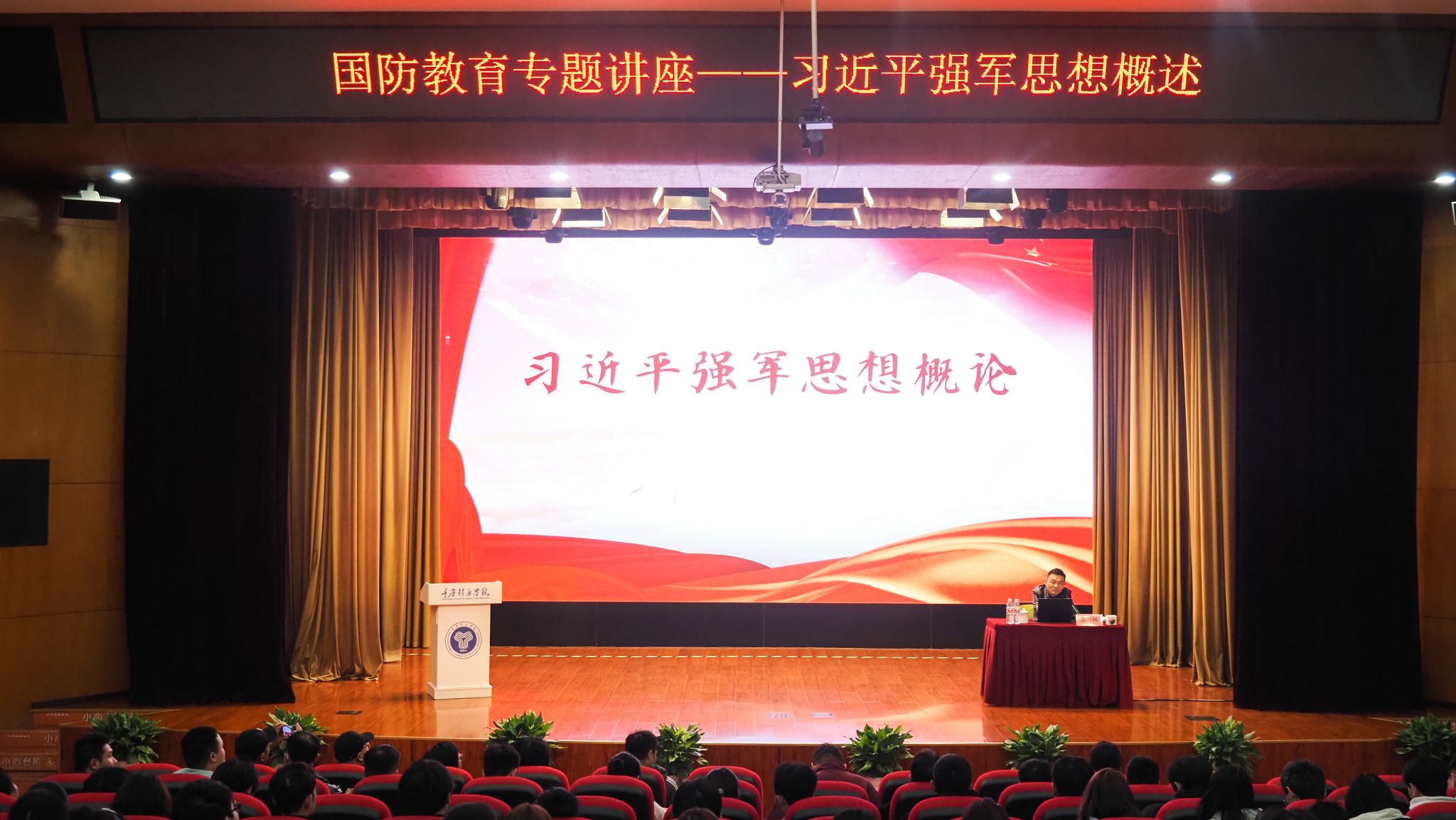 习近平强军思想,是习近平新时代中国特色社会主义思想的重要组成部分,是我们党不懈探索中国特色强军之路形成的宝贵思想结晶,是加快国防和军队现代化、全面建设世界一流军队的根本遵循和行动纲领。为全面学习掌握习近平强军思想,进一步深化爱国主义教育和国防教育,11月21日,我校特邀重庆市教委离退处袁耿林副处长来校作“习近平强军思想概论”专题讲座,本次讲座由学生处处长陈帅主持,各学院师生代表共同参与。