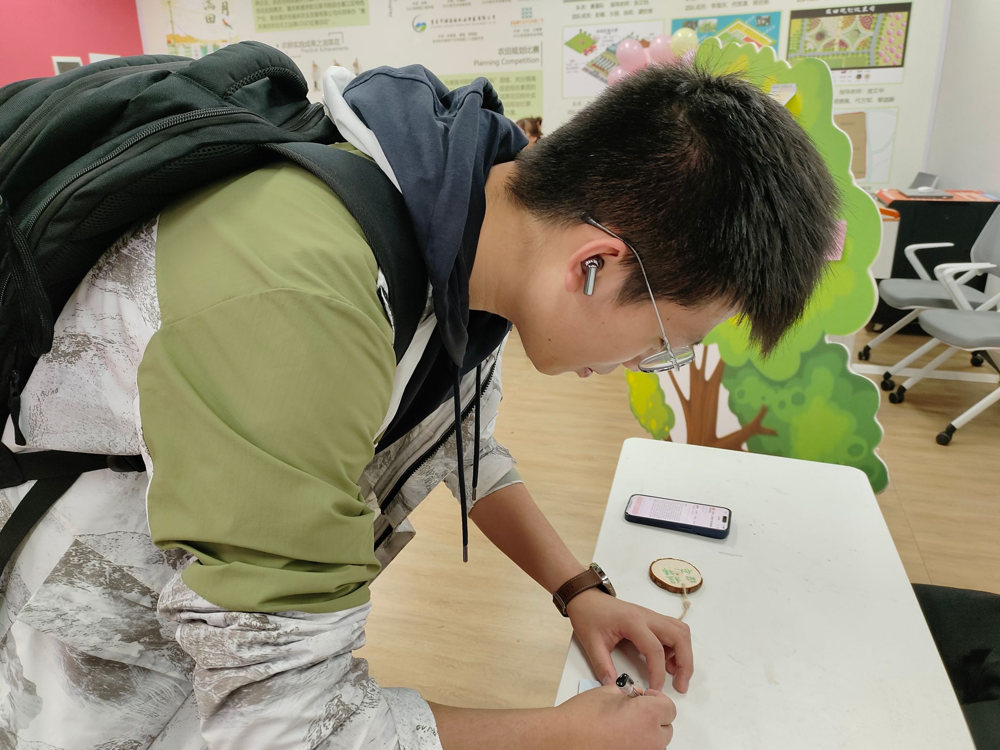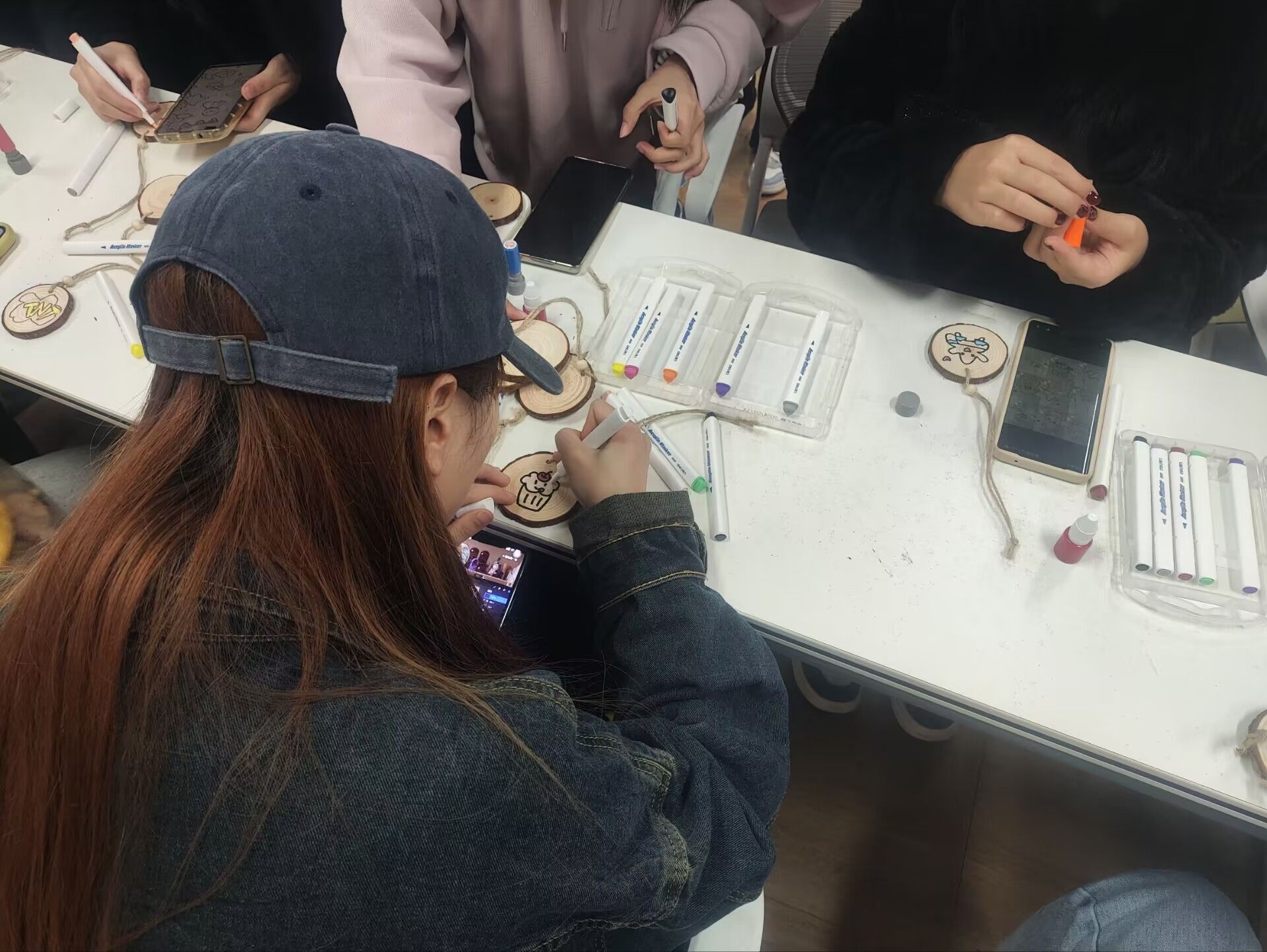 活动伊始,随着主持人的一声令下同学们开始亲身参与到书签的制作过程之中,一笔一画,绘得妙签。在同学们精心制作的书签上描绘出的美丽画卷,展现了自己在资助育人政策下追逐梦想的历程、努力取得的成果。每一枚书签都凝聚着同学们对未来发展美好的憧憬,也成为他们未来阅读和学习中的一份珍贵纪念。