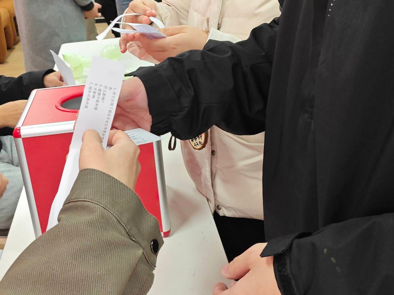 为进一步宣传资助政策,展现资助育人成效,提高同学们对资助育人政策的了解程度,助力营造诚信、感恩、励志的校园文化氛围,活动设置资助政策的问答知识竞答环节。当工作人员说出关于资助育人政策的题目时,同学们纷纷抢答,现场氛围被推向了高潮,激发求知欲和学习兴趣,回答正确之后可以获得积分奖励兑换精美小礼品,增加活动竞争性,让同学们更加关注和了解学校资助育人政策的相关知识。