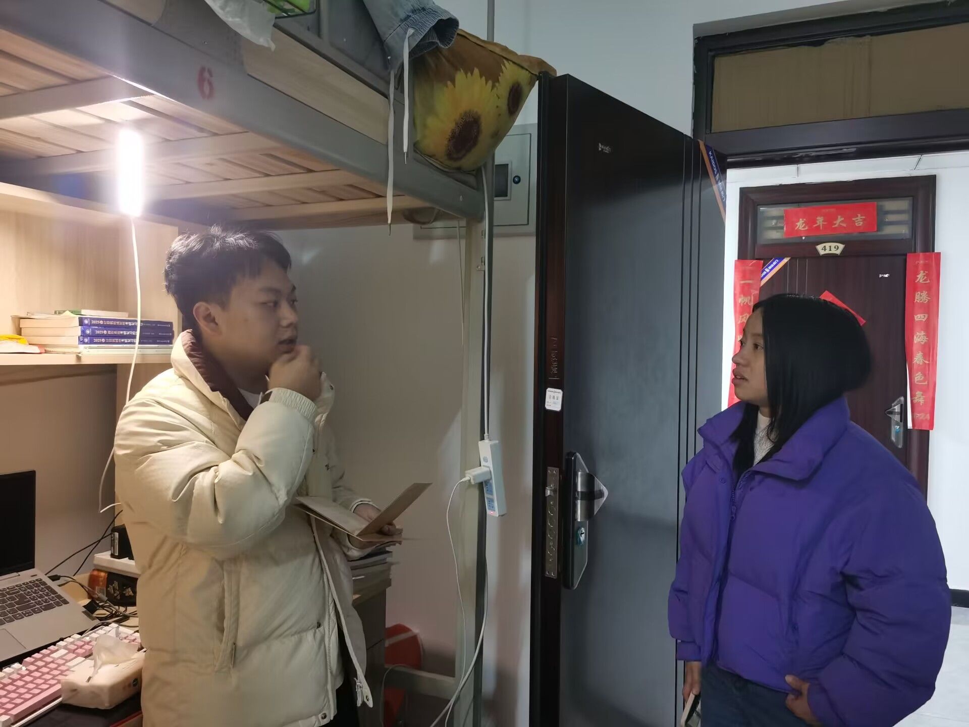 查寝过程中,学院领导、辅导员以及班导师们分工明确,各司其职,检查每个寝室的卫生状况,从床铺的整洁度到地面的清洁度,无一不体现出对学生生活细节的关心。同时,安全设施的检查也是此次查寝活动的重中之重。老师们仔细查看了宿舍内的消防设施、紧急疏散通道等,确保学生们在紧急情况下能够迅速、有序地撤离,为他们的生命安全提供了有力保障。