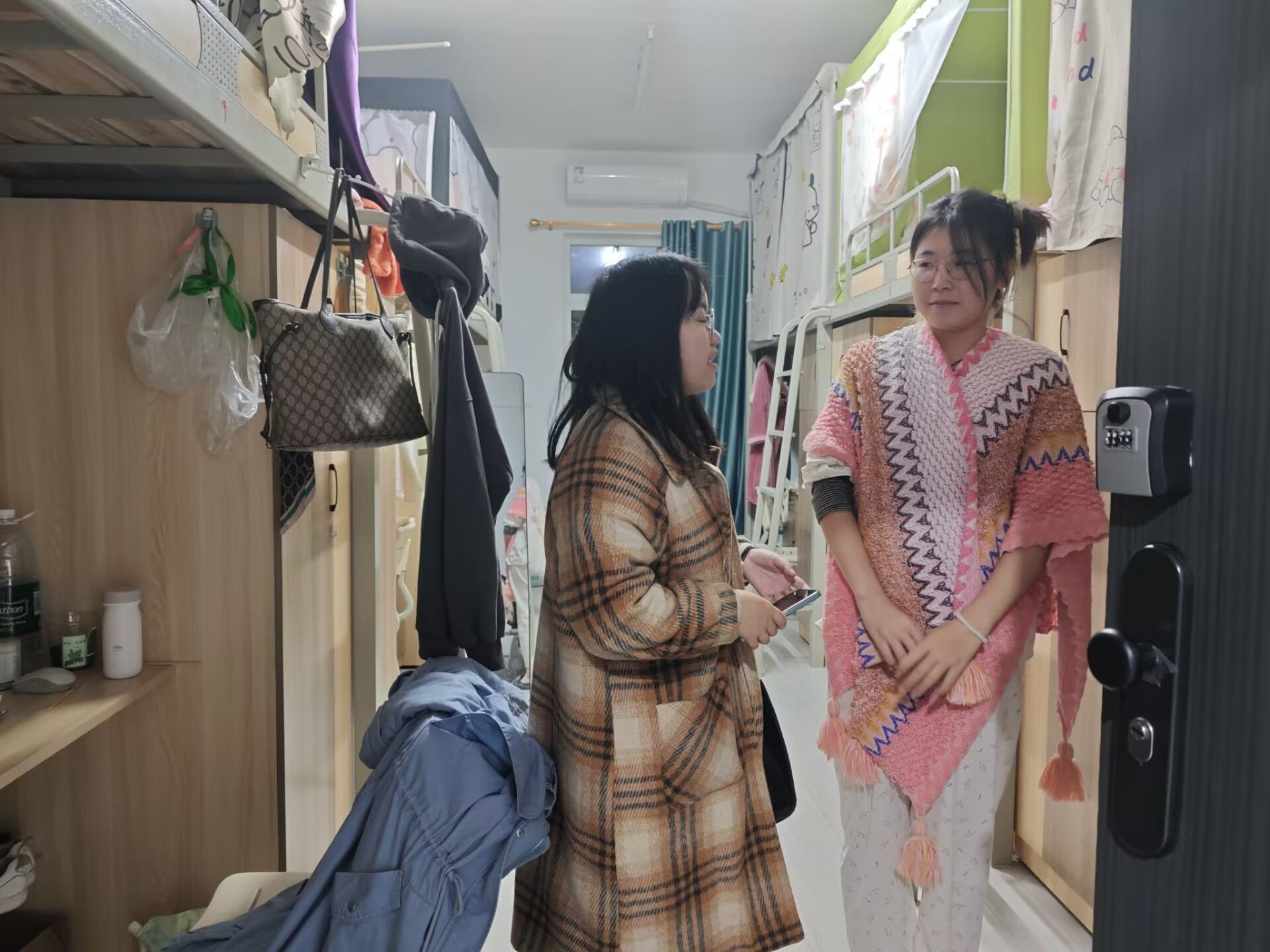 夜幕降临,学校教学楼内灯火通明,宿舍区里一场温馨而有序的查寝活动正在悄然展开。计算机学院的辅导员们带着对学生们的深切关怀,逐一走访了各个寝室。每到一处,都以亲切的笑容和温柔的话语,询问学生们的生活状况,了解需求和困难。