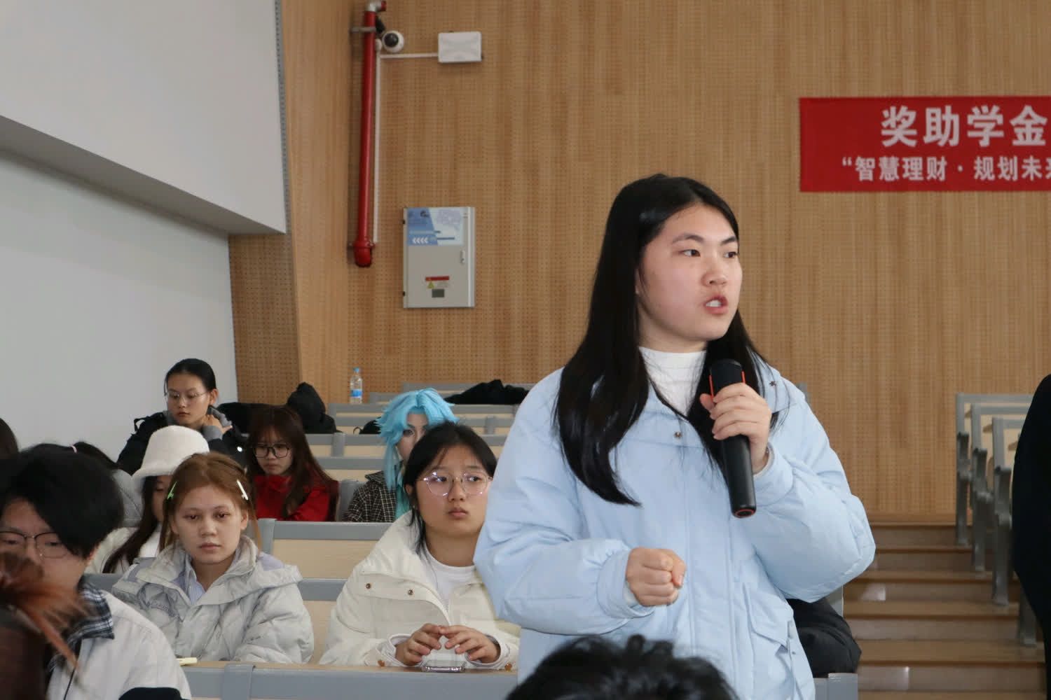 答辩环节结束,在随后的互动环节中,学生针对奖助学金的规划、记录、使用等问题向老师们提出了疑问,并获得即时的解答与指导,从而加深对知识点的理解和掌握。现场同学积极踊跃,周雨欣老师与学生共同讨论了关于财商的问题,并分享了理财技巧。周老师表示:“在日常的财产开销中,我们要主动学习财商知识,注重自己的财产安全。财商教育对于经济管理和自我保护能力的提升至关重要。通过参与活动,同学们应认识到财商的重要性,并持续关注金融知识的学习。”