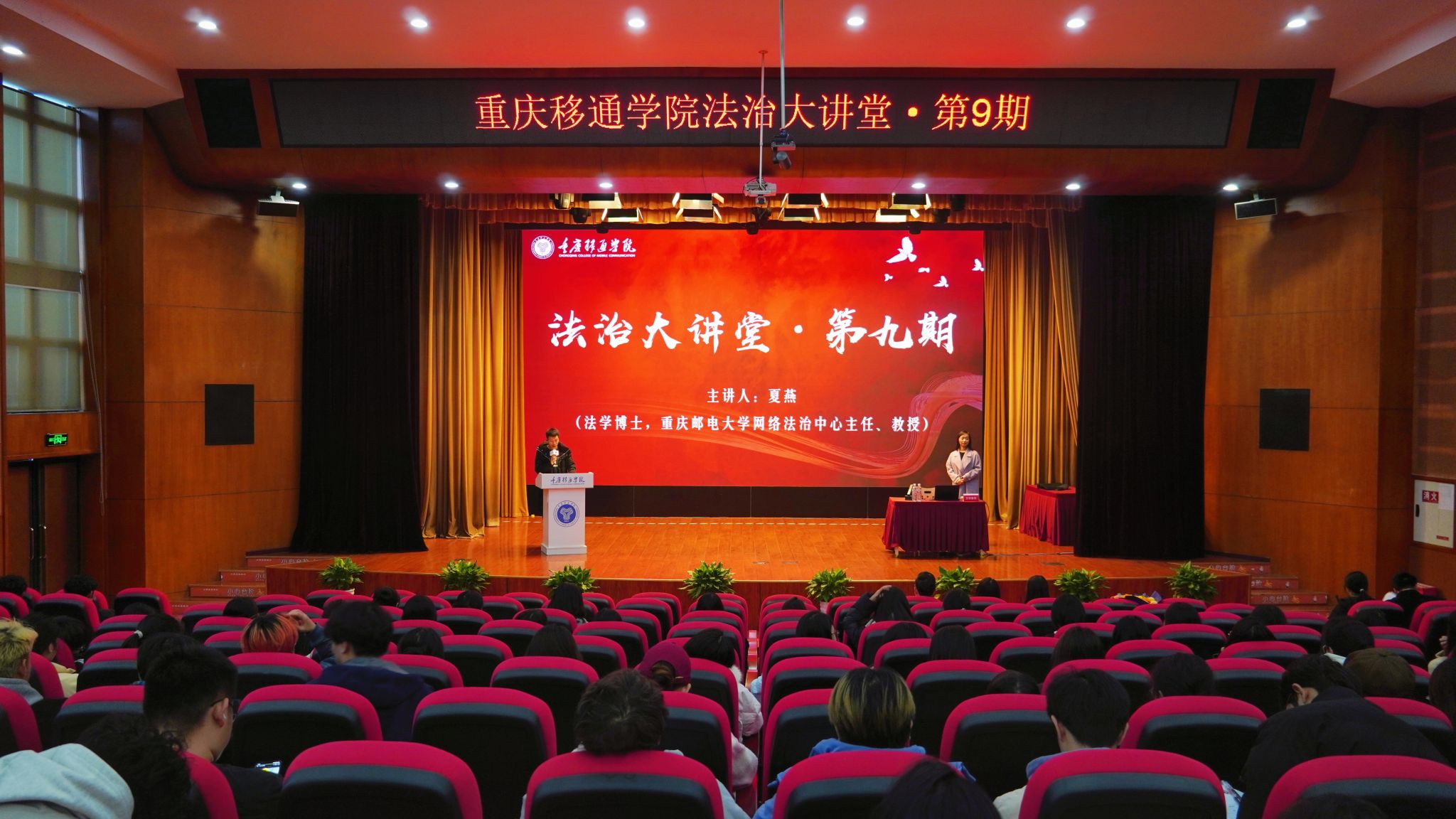 2024年11月28日下午,我校在下里巴人剧场顺利开展第九期法治大讲堂活动。本次法治大讲堂邀请到了重庆邮电大学网络法治中心主任、安法学院教授夏燕到校作题为“大学生网络安全与法治教育”的专题讲座,讲座由学生处处长陈帅主持,各学院辅导员及学生代表总计380余人到场聆听。