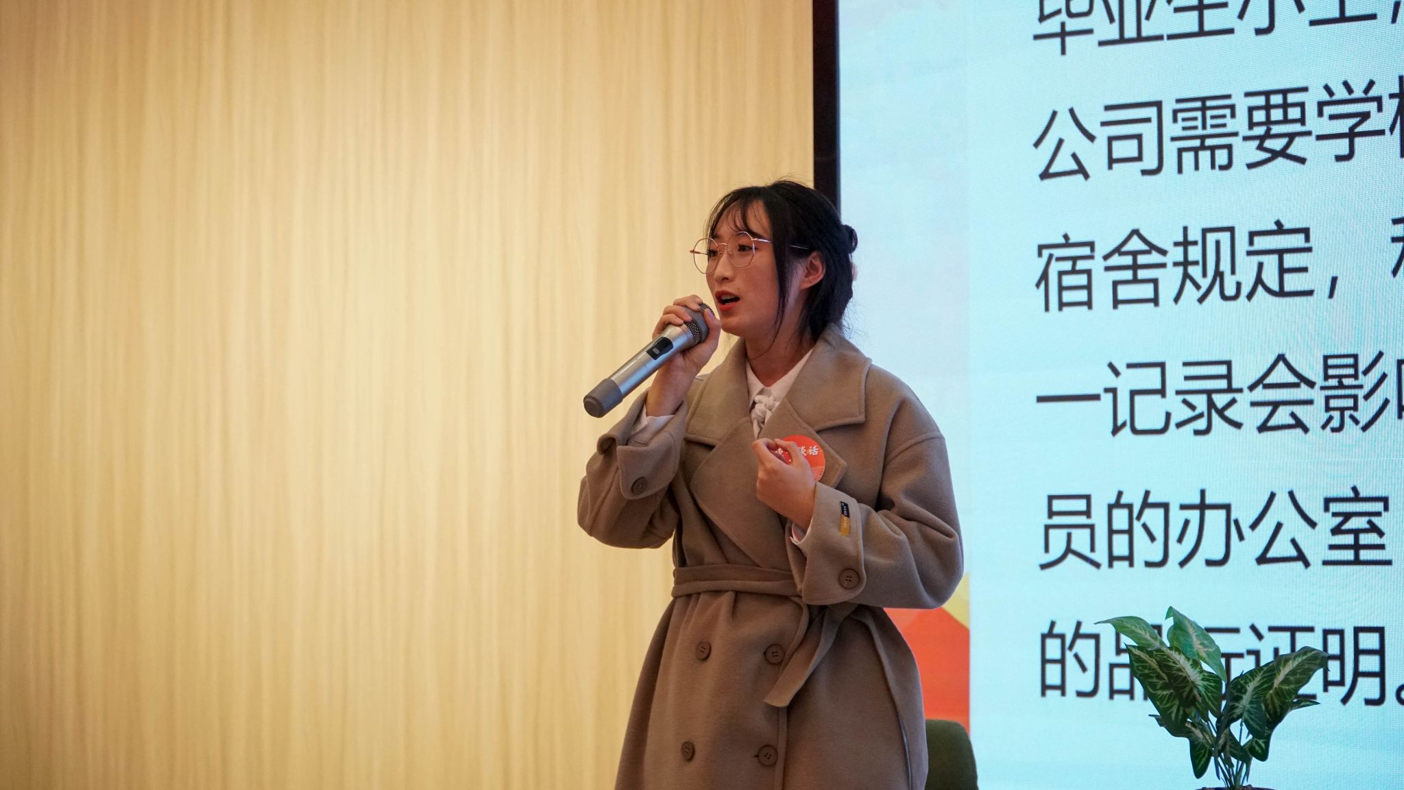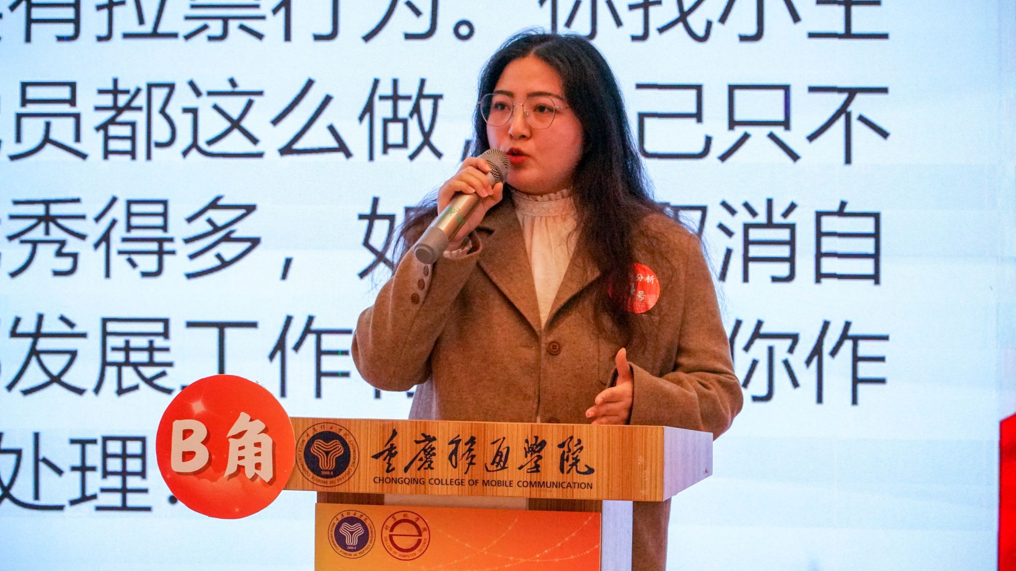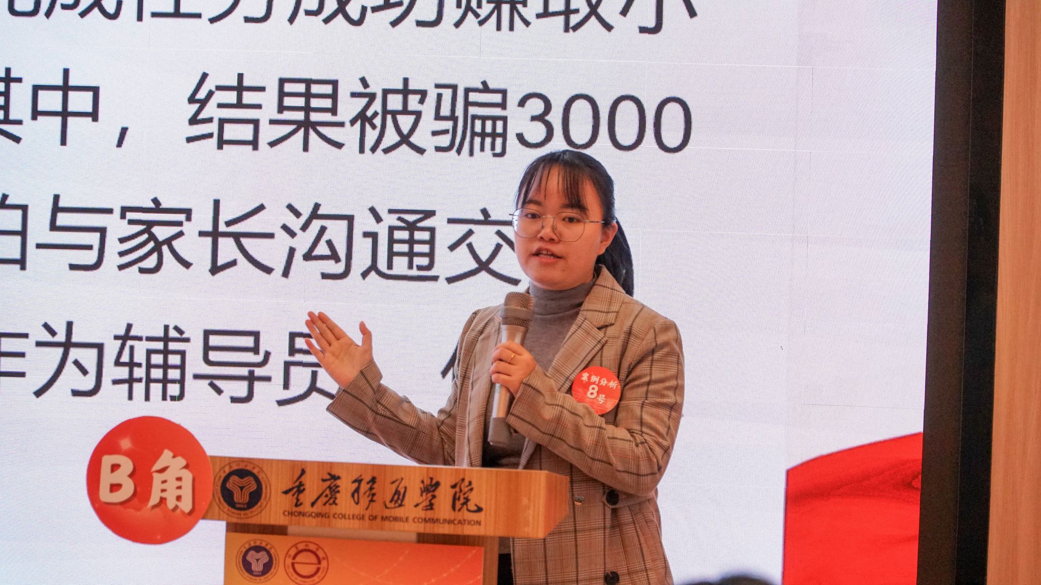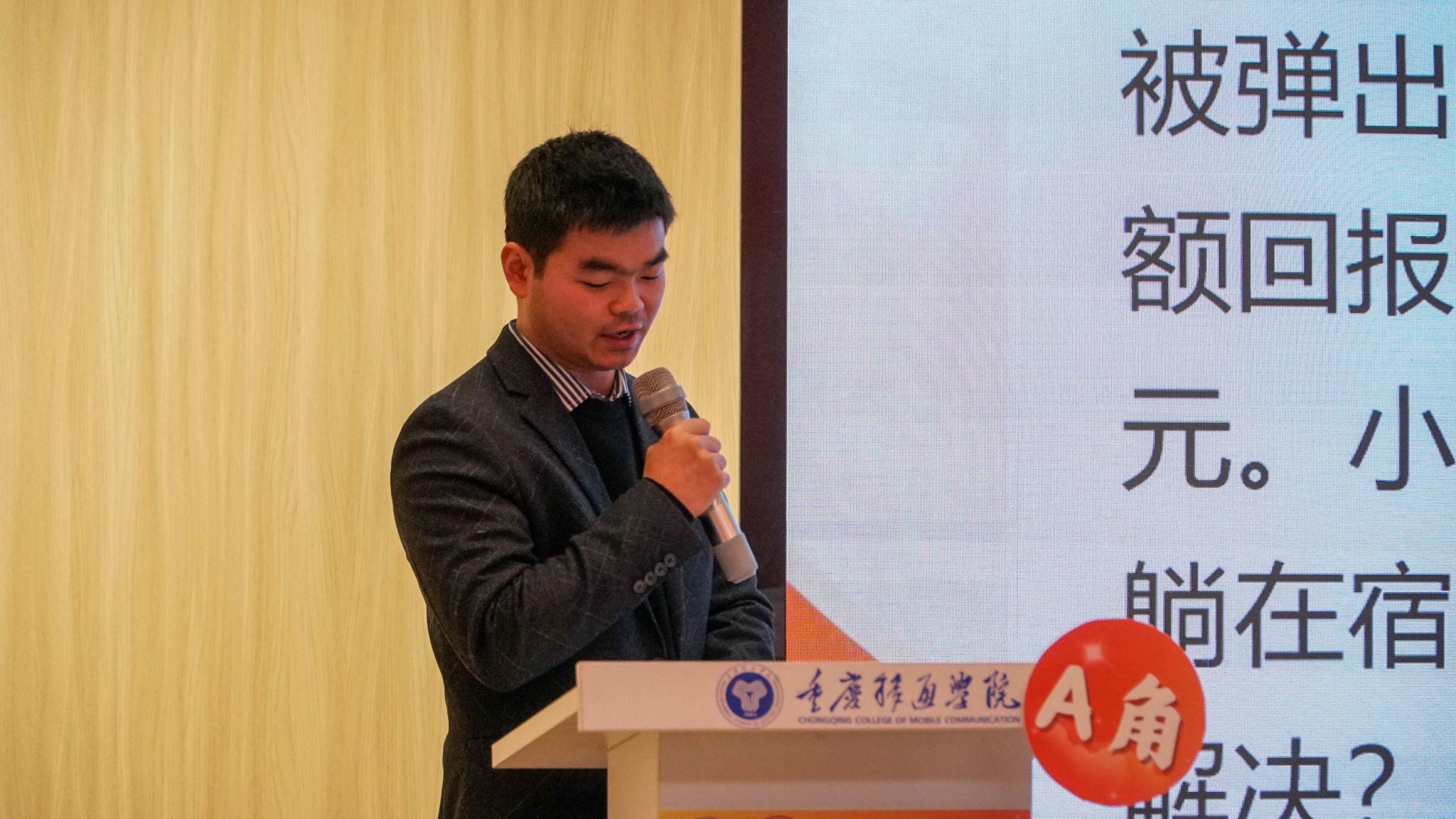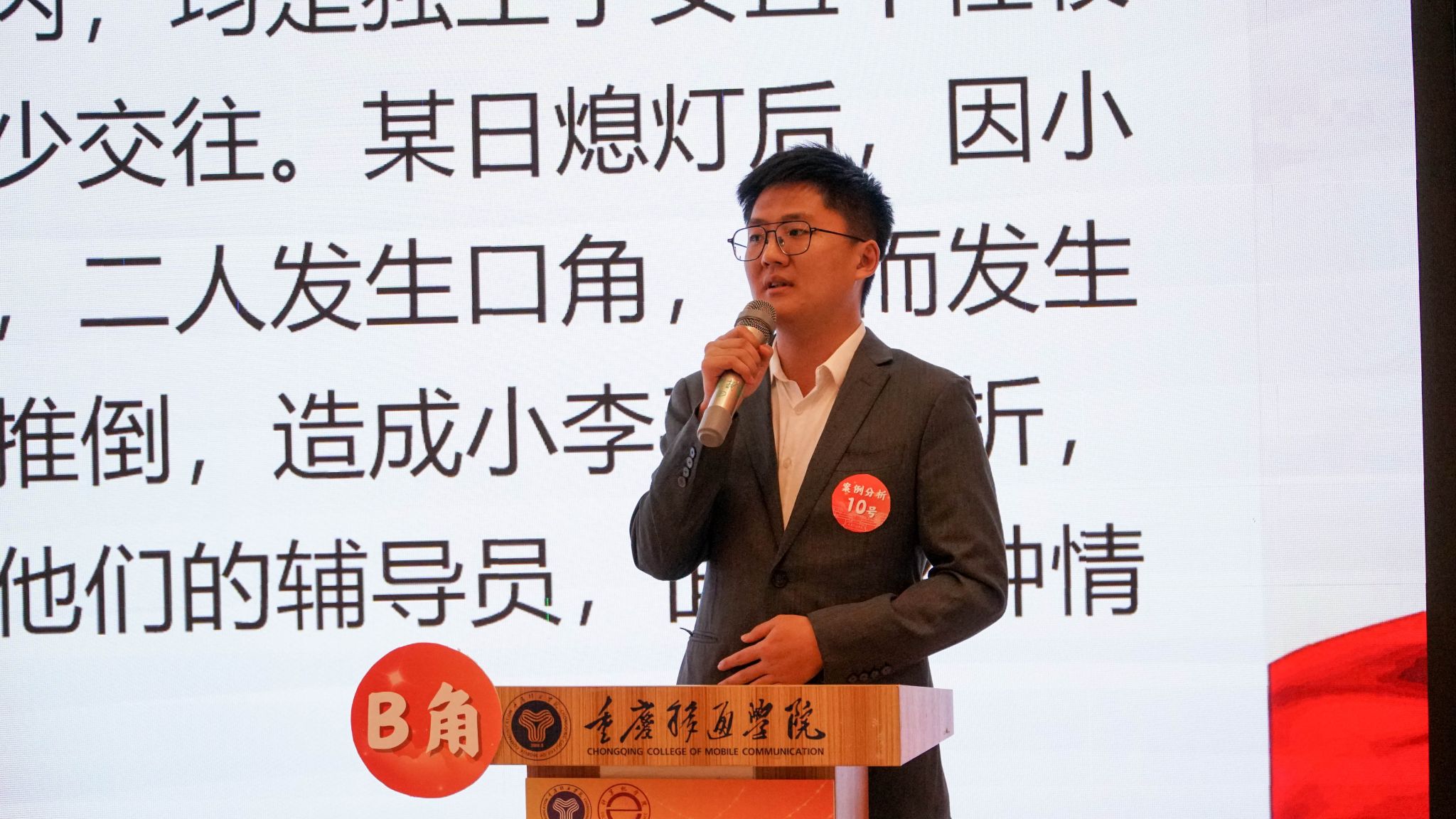 案例分析环节,是对辅导员们应变能力与实战技巧的严峻考验。选手们根据随机抽取的案例,迅速进入角色,以“我提问,你回答”的互动模式,深入剖析问题本质,共同探寻解决之道,提炼经验规律。从诈骗防范的机智应对、权益维护的正义伸张,从生活琐事的细腻处理,到情感纠葛的理性疏导、安全问题的敏锐警觉及心理健康的细致关怀,每一个案例都成为辅导员们智慧与经验的火花碰撞,充分展现了他们处理复杂问题的卓越能力与专业素养,赢得了在场师生的广泛赞誉。