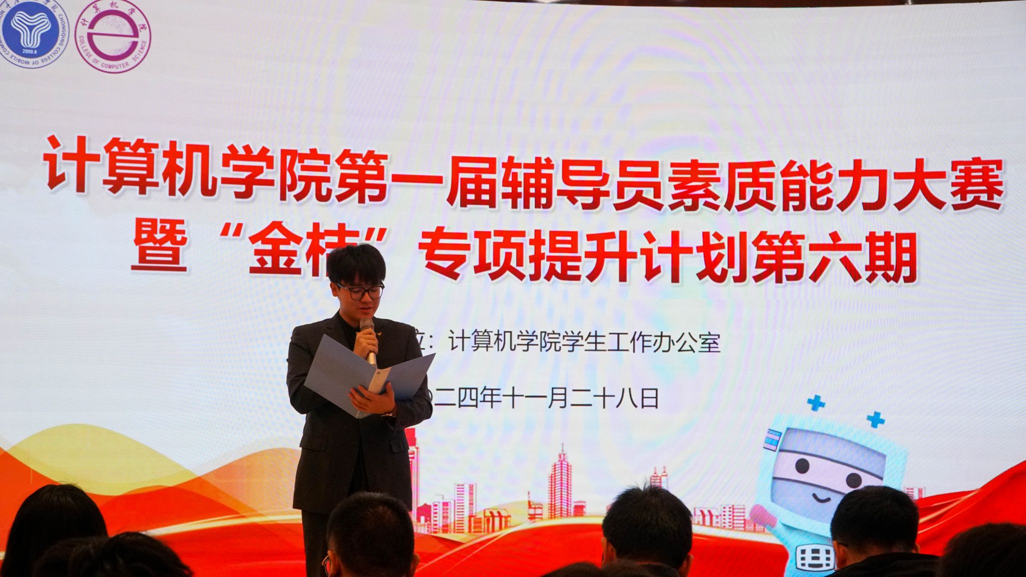 在冬日和煦阳光的温柔拥抱中,计算机学院第一届辅导员素质能力大赛于11月27日至28日顺利举行。此次大赛旨在深入贯彻落实立德树人的根本任务,进一步提高辅导员队伍的理论水平,增强教育引导能力、组织管理能力、心理辅导能力和突发事件应对能力,是对完满教育理念深度实践的有力探索,为新入职辅导员搭建起一座全面融入学校教育体系的桥梁。学生处副处长唐尚静及各二级学院学工负责人亲临比赛现场担任评委。