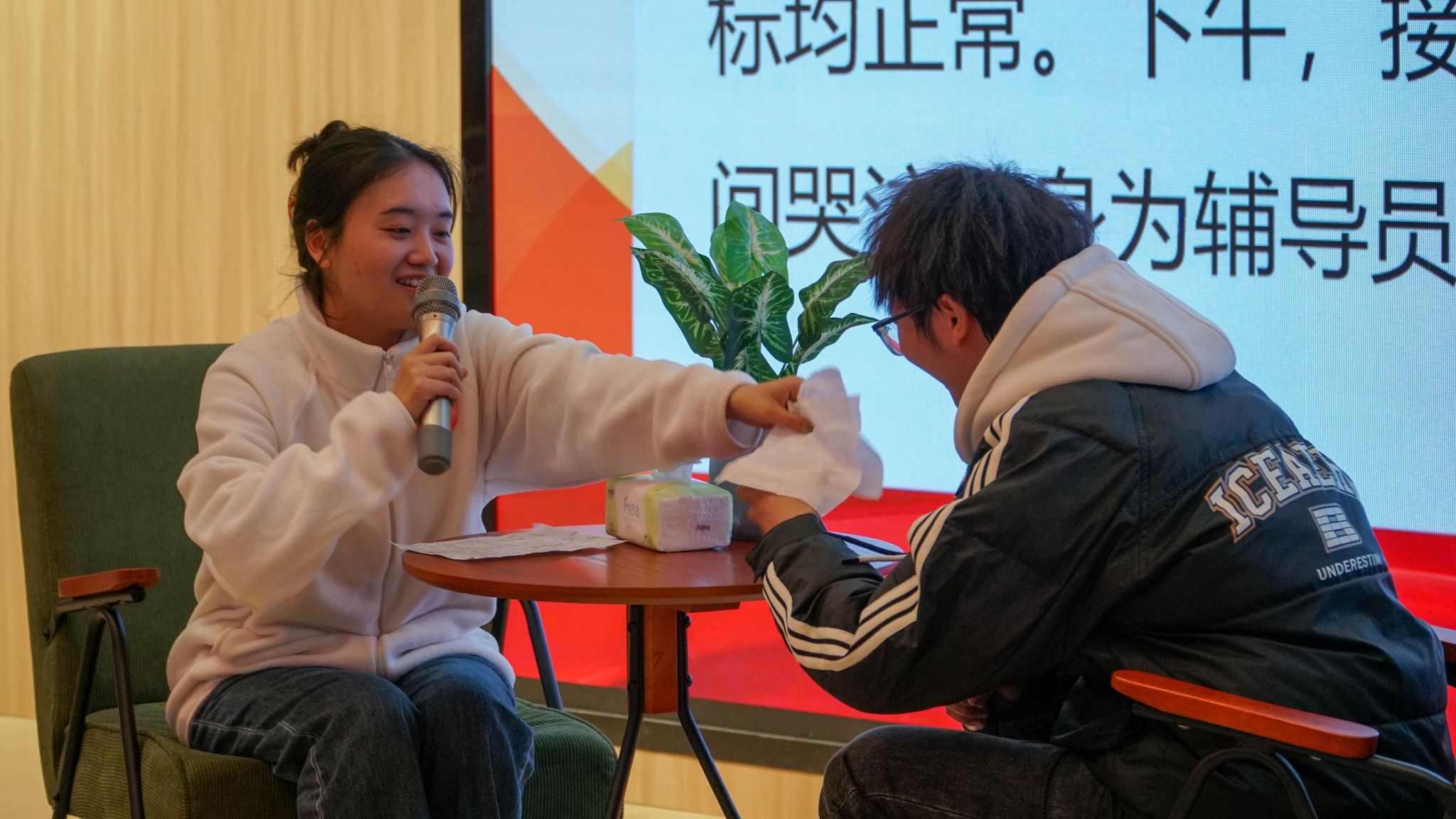 在谈心谈话这一关键环节,精心设计的语境与情景生动再现了大学生日常学习生活中纷繁复杂的挑战,涵盖学业上的困惑、学生组织工作的难题、心理健康的微妙波动,以及网络舆情事件的应对等多个维度。辅导员们凭借高超的沟通技巧,以轻松自然的聊天方式切入话题,巧妙地将国家方针政策、社会热点与自身丰富的生活及工作经历相结合,既以理服人,又以情动人,展现了深厚的专业素养和对学生无微不至的关怀。辅导员们不仅展现了严密的逻辑思维,更在提出解决方案时,确保建议的客观性与中肯性,体现出深厚的专业素养,流露出对学生无微不至的关怀。