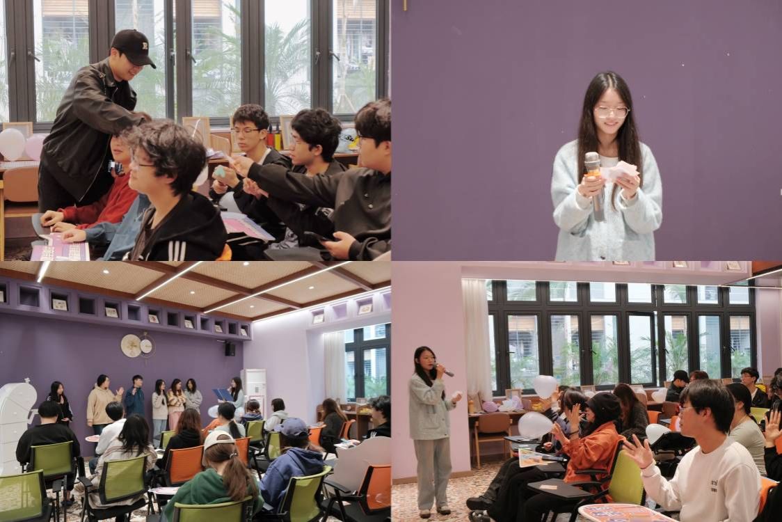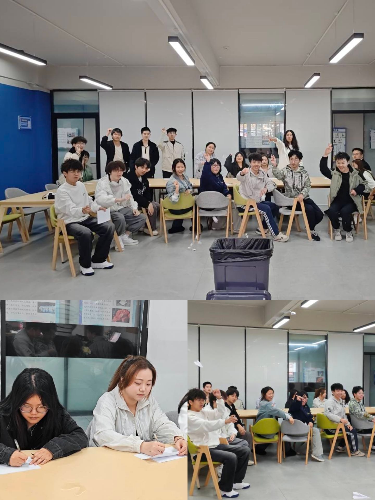 2023级大健康管理学院体育经济与管理3班吴迪迦同学先是讲解了幸福是什么,什么时候体会到幸福,接着请同学分享自己认为的幸福,最后同学们一起合唱《稳稳的幸福》,在动听的旋律中为自己谱写下一段美妙的乐章,通过音乐疗法,让同学们能够在这里放下包袱、释放情感、寻找内心的平静和力量。2023级通信与信息工程学院通信工程卓越6班的李雨秦同学利用彩绘曼陀罗这个小活动,一种特殊的心理护理手段,来初步呈现同学们个体的发展、人格、能力、关注点等信息。同学们通过互动让同学们深刻体会到心灵知识的美丽。