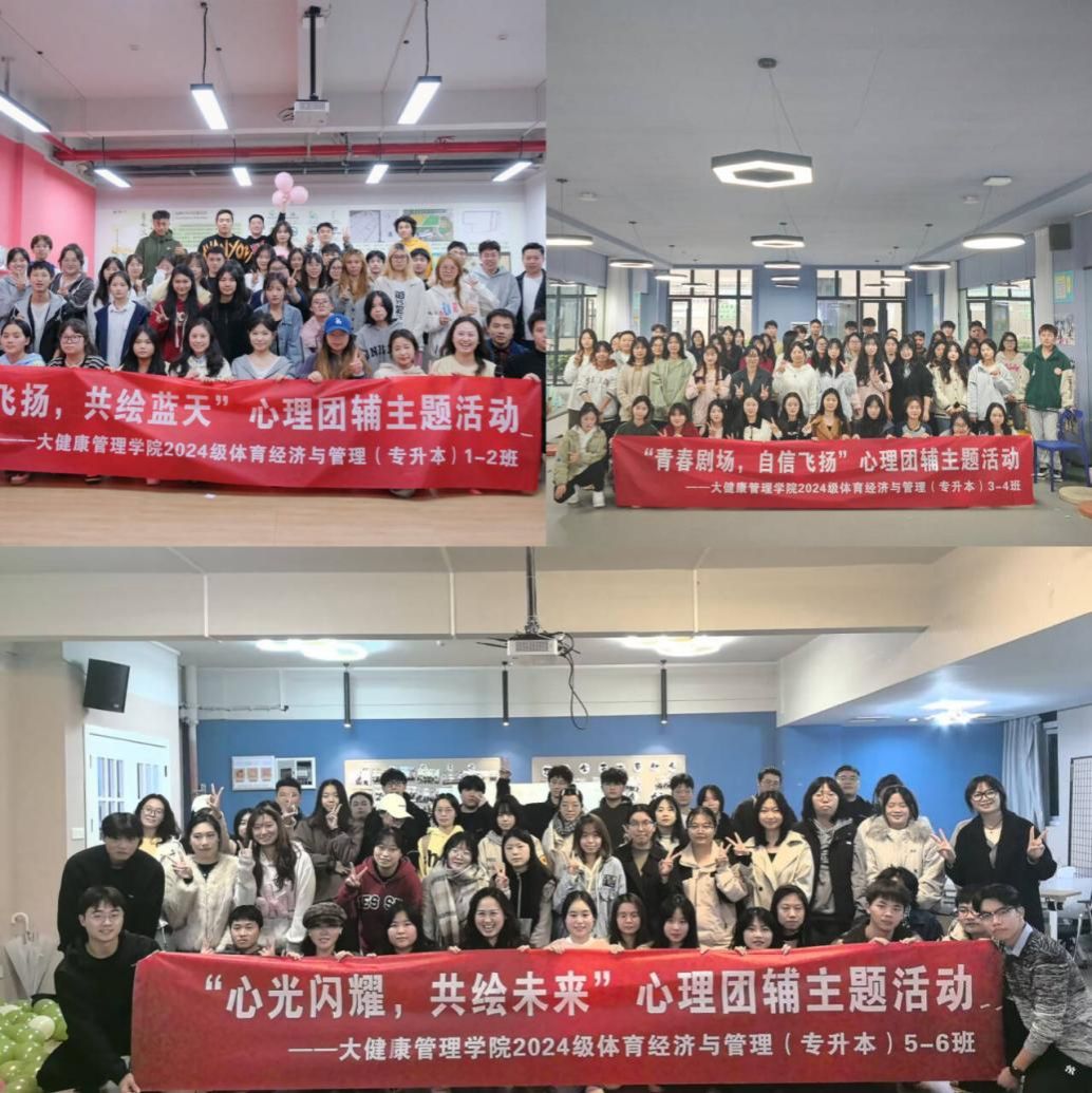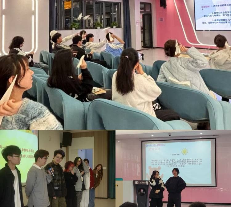 大健康管理学院辅导员余隆艺老师以“内耗心解码,强化适应力”为主题在体育经济与管理专升本9、10班拉开此次活动的序幕,通过深入剖析了内耗心理对个人及团队的影响,分享了一系列自我调节策略,鼓励同学们了解自己、接纳自己、积极思考,挑战负面思维。信息安全学院辅导员冯寅老师也参与到软件工程专升本7-8班同学们以“情绪彩虹桥,班级心连心”为主题的讨论中,给予了专业的指导和建议。强调了情绪管理的重要性,鼓励同学们在日常生活中学会正确地表达和释放情绪。戏剧影视学院电影制作1、2班在辅导员邓艳老师的带领下,开展了“呵护心灵,共同成长”主题的心理团辅活动,活动中,同学们互相分享了心理教育的方法与技巧,积极倾听、组织角色扮演、分组讨论和分享活动心得,让同学们更好地认识自己和他人。大数据学院甘艳平老师给数字媒体技术(专升本)6、7班的同学们带来了“探索人格成长,成就美好心灵”为主题的心理讲座。讲授了心理健康的重要性、常见心理问题的识别与应对方法,以及如何培养积极的心态和良好的人际关系。让同学们对心理健康有了更深刻的认识。