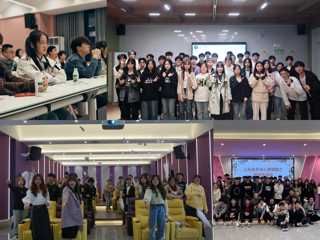 戏剧影视学院动画专业1-8班在辅导员周江琴老师的主持下,开展了“名字接龙猜猜猜”“我的梦想我知道”等游戏环节,同学们在纸条上写下自己大学生活的期盼与个人目标,进行分享与交流。班级同学间的距离一步一步被拉近。大健康管理学院辅导员代敏老师在体育经济与管理1-6班开展了“食物链顶端:身份转换之战”的游戏之旅。在紧张刺激的游戏中,同学们巧妙运用策略,相互协作,不仅锻炼了团队协作与策略规划能力,还加深了对彼此的了解。大健康管理学院彭兰萱老师带领养老服务管理专业1班,以组队的方式进行了“悦纳自己”互动游戏,大家以真挚的分享赢得了班级成员的热烈掌声和鼓励,鼓舞了更多同学勇敢地面对并接纳自己的不足,见到了本心,也收获了友谊。大数据学院数字媒体技术1、2班的同学们在辅导员曾珂老师的带领下,共同观看了一部治愈系的心理电影,情绪随着剧情跌宕起伏,交流分享也此起彼伏,彼此的心更贴近了。计算机学院辅导员张脐方老师通过在室内设置自我介绍与才艺展示环节,在室外开展“撕名牌大战”游戏,提升了计算机科学与技术专升本1-6班同学们的心理健康素养,增强了班级凝聚力,为大家搭建起了一座沟通与理解的桥梁。