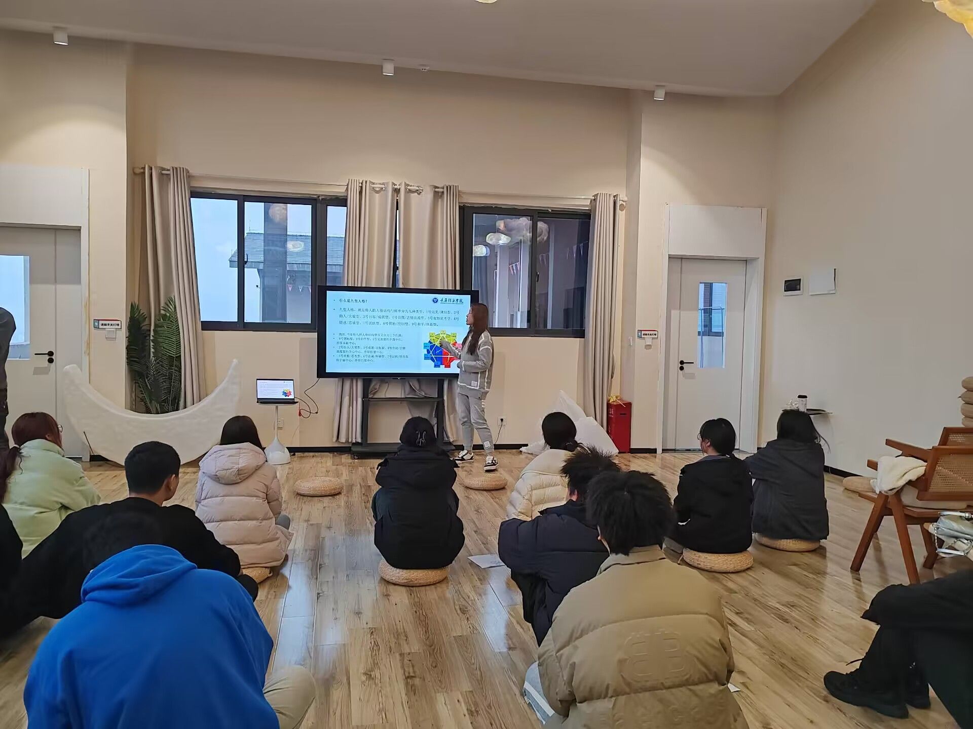 活动尾声,丁滢老师以深入浅出的方式,为同学们揭示了“九型人格”的奥秘,并详细阐述“九型人格”的理论精髓。通过丁滢老师的讲解,同学们对“九型人格”有更深刻的理解,认识到这一理论将成为他们认识自我、理解他人的有力工具。此次活动通过引导学生深入体验正念冥想的魅力,帮助他们学会自我调节,释放内心压力,在繁忙的学习生活中找到一片宁静的港湾,为学生们的身心健康和未来发展注入了新的活力。