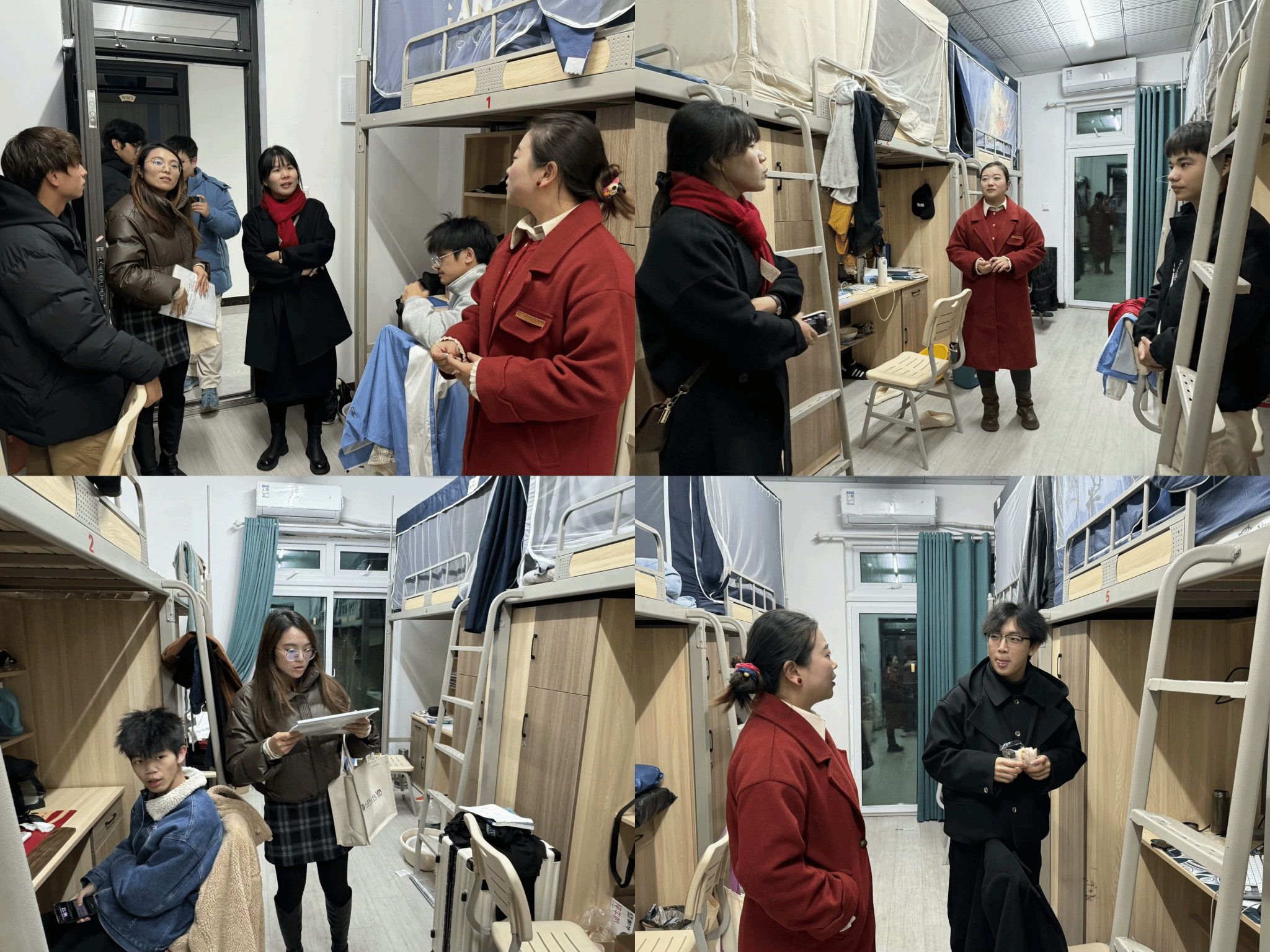 为提升学生安全意识,数字经济与信息管理学院于2024年12月12日17:30开展了12月集体查寝活动。学院学工副院长任瑞娟老师、学工办主任任超群老师、团总支书记潘锐老师及全体辅导员老师们深入学生寝室,为同学们带去关心与温暖。