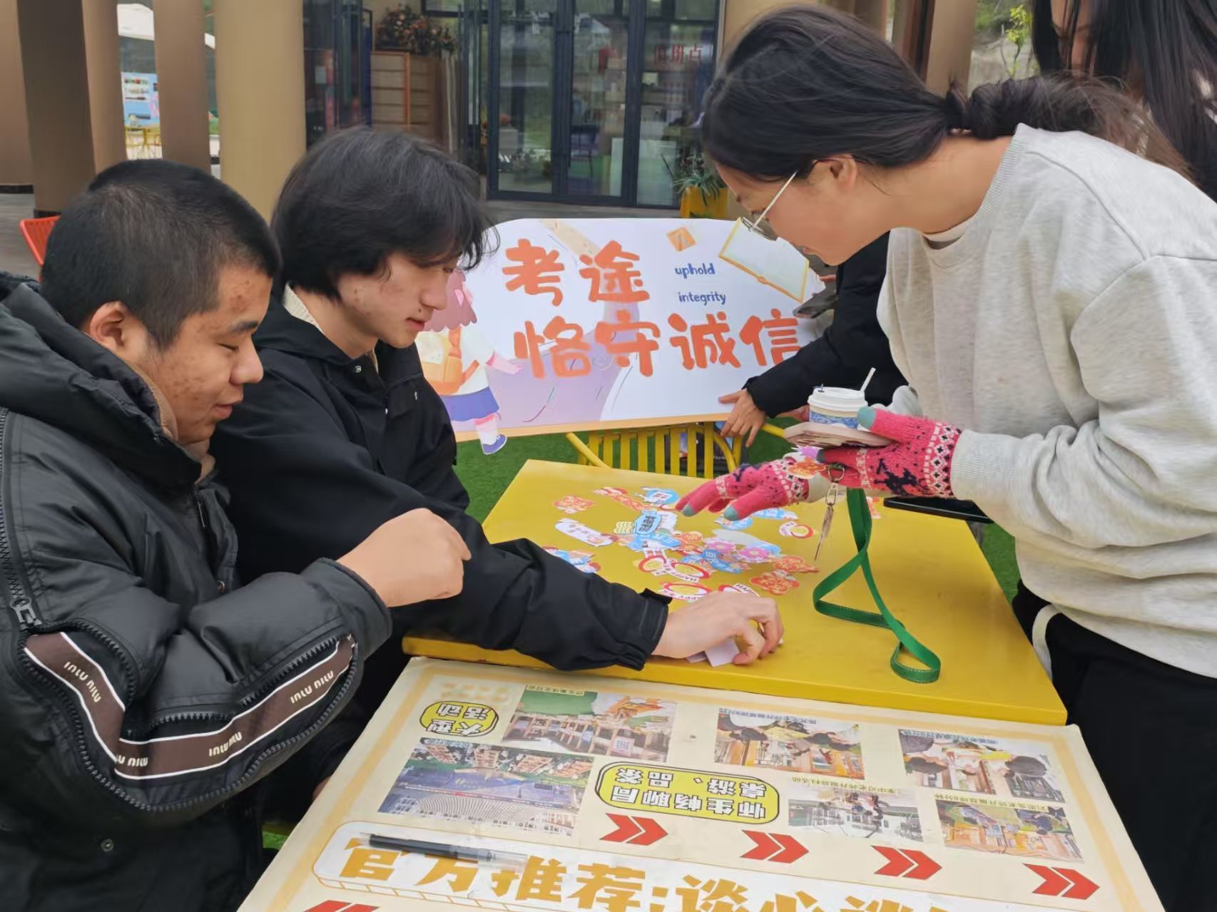 考风正则学风浓,学风浓则校风清。随着期末考试的来临,健管er们正沉浸在一个紧张而有序的备考氛围里。为了维护教育的公平与正义,确保学术诚信的底线,大健康管理学院于12月20日在古剑书院中庭进行着一场诚信的考验。