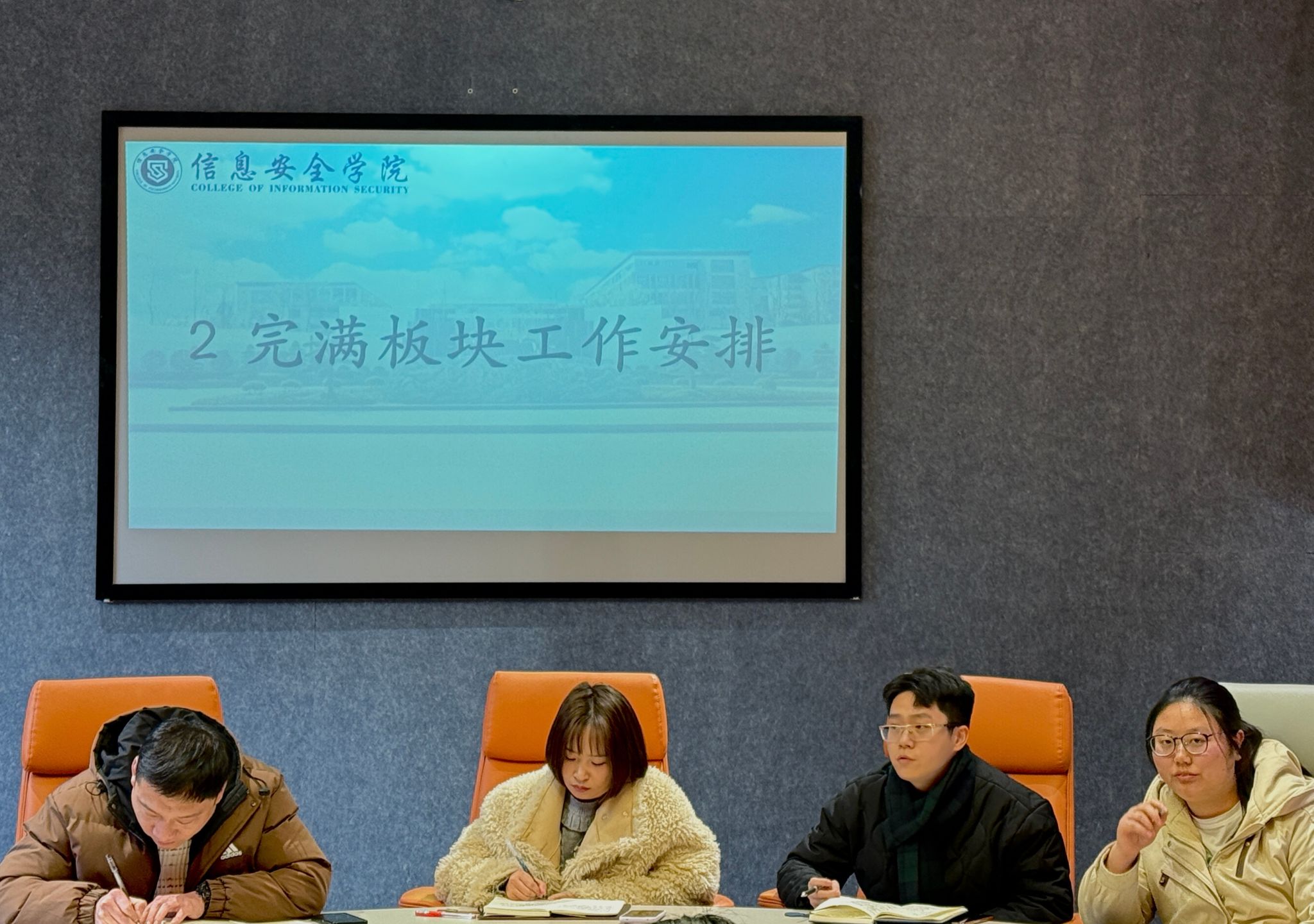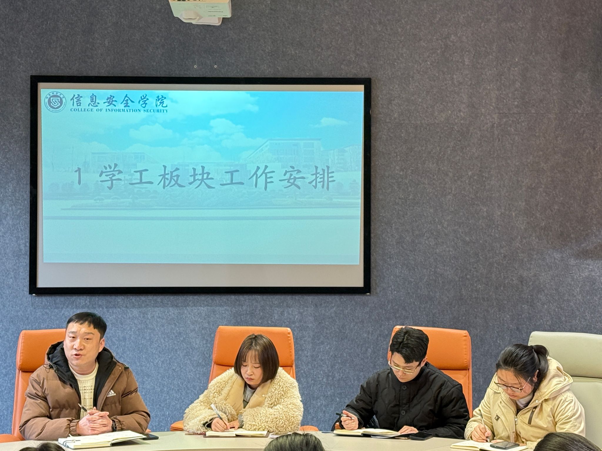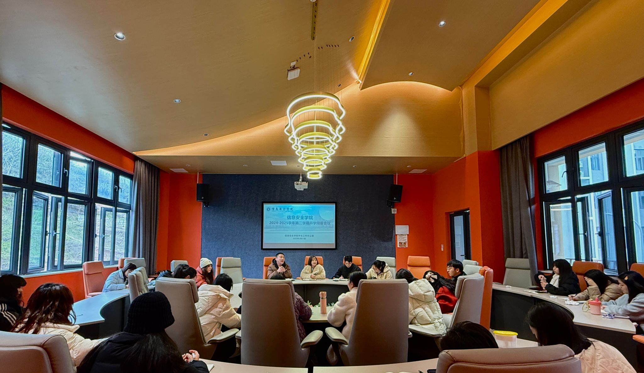 春风轻拂万物苏,白雪消融绿意长,在冬去春来的温柔交替中,新学期的序章在春意盎然中悄然开启。2025年2月21日,古剑·龙泉会议室内,信息安全学院的学工副院长,学工办主任、团总支书记、就业创业办公室主任及全体辅导员齐聚一堂,共同为新学期学生工作谋篇布局,为莘莘学子新学期的学习生活保驾护航。