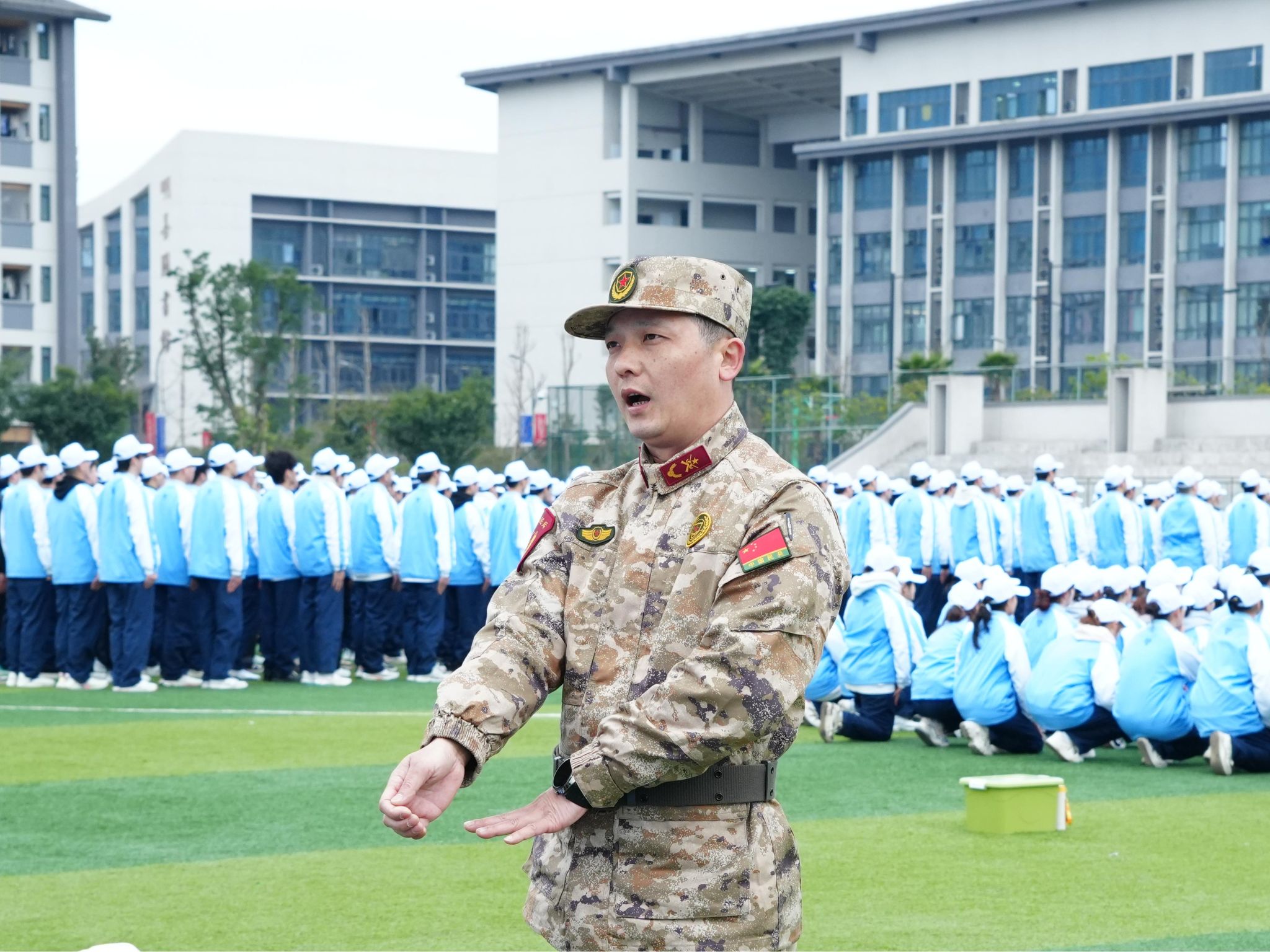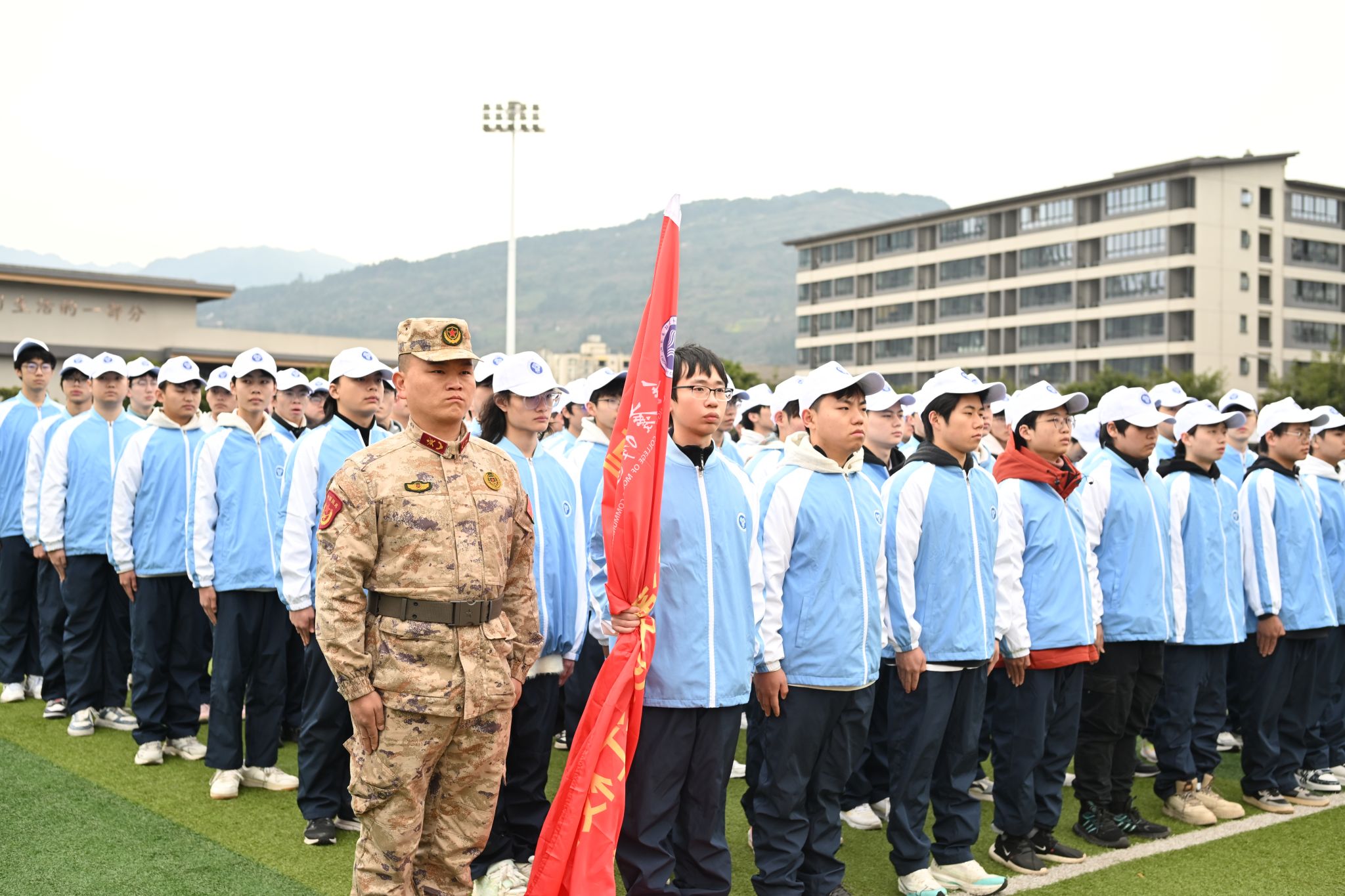 2月23日上午8:00,重庆移通学院綦江校区2024级新生军训动员大会拉开序幕。戏剧影视学院2024级全体戏娃着装整齐,芳华待灼。风里挟着寒意,偶尔撩拨着军训新生的发丝、衣角与眉眼。台上,教练言传身教,力学笃行;台下,学生积蓄星火,精神抖擞。戏娃们整装待发,军训正式开始!