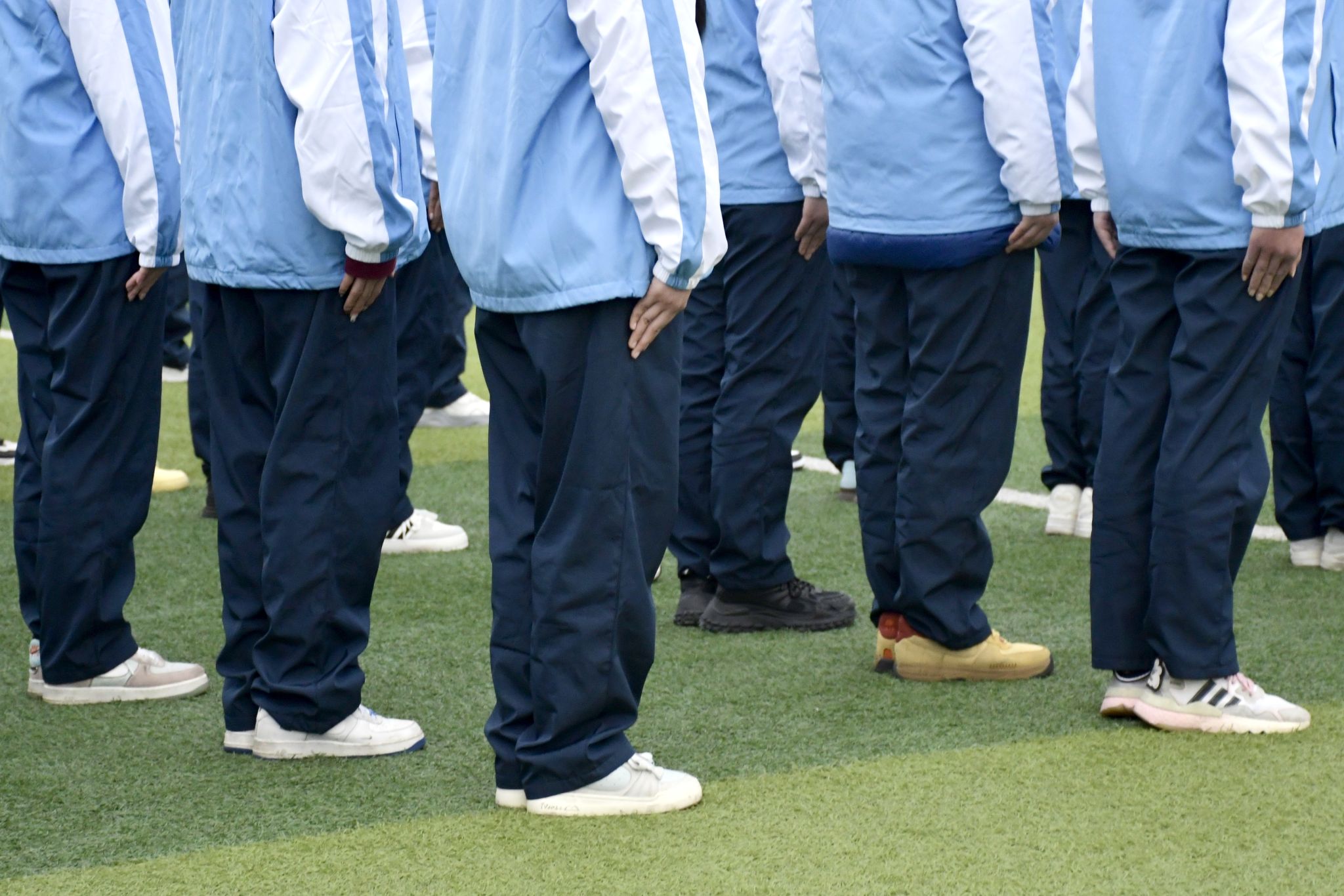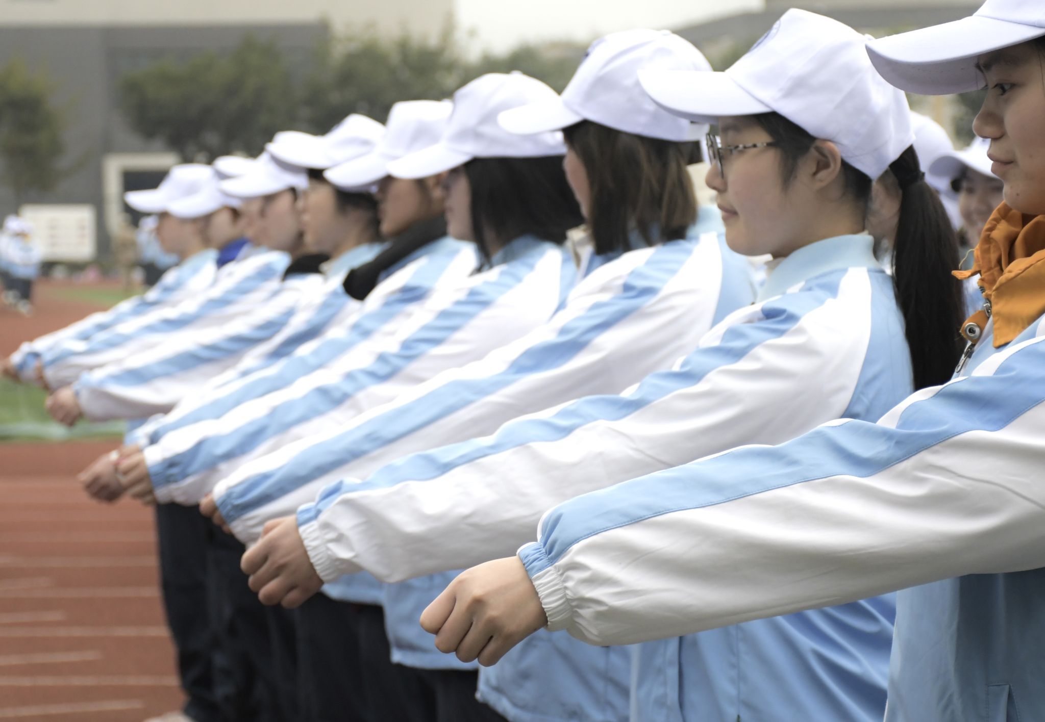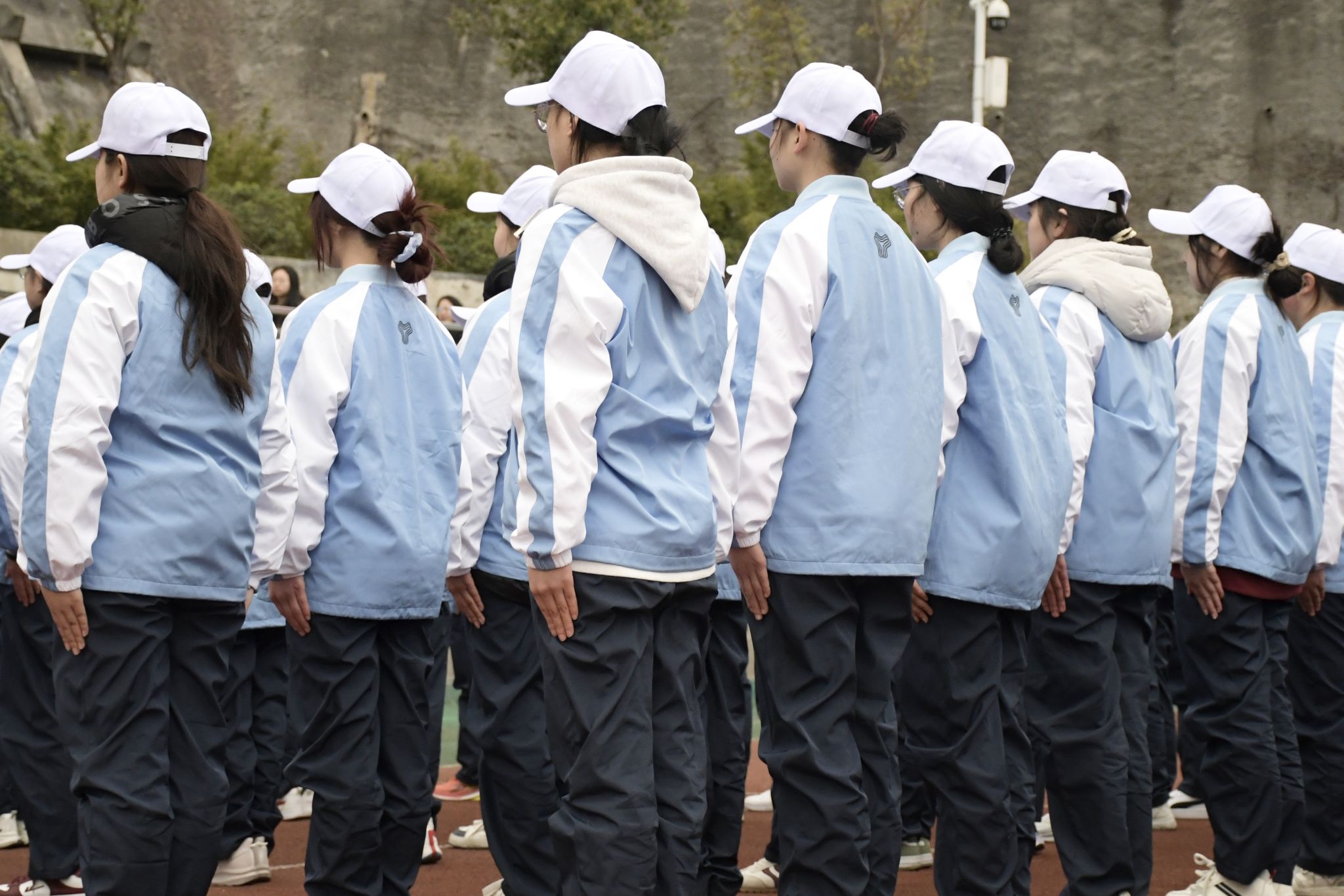 蓝白相间的军训服饰