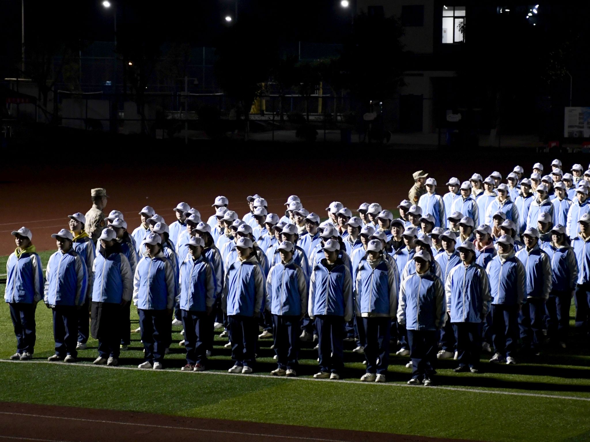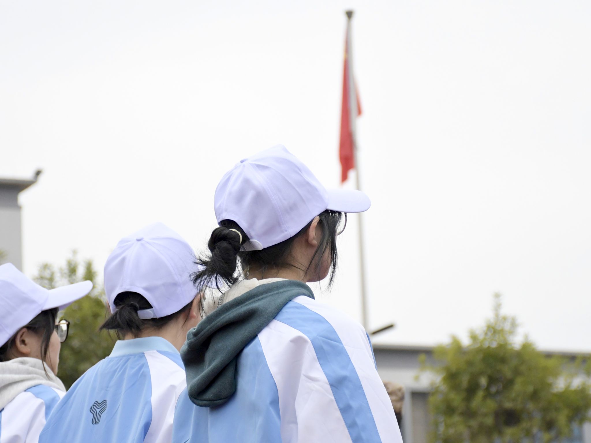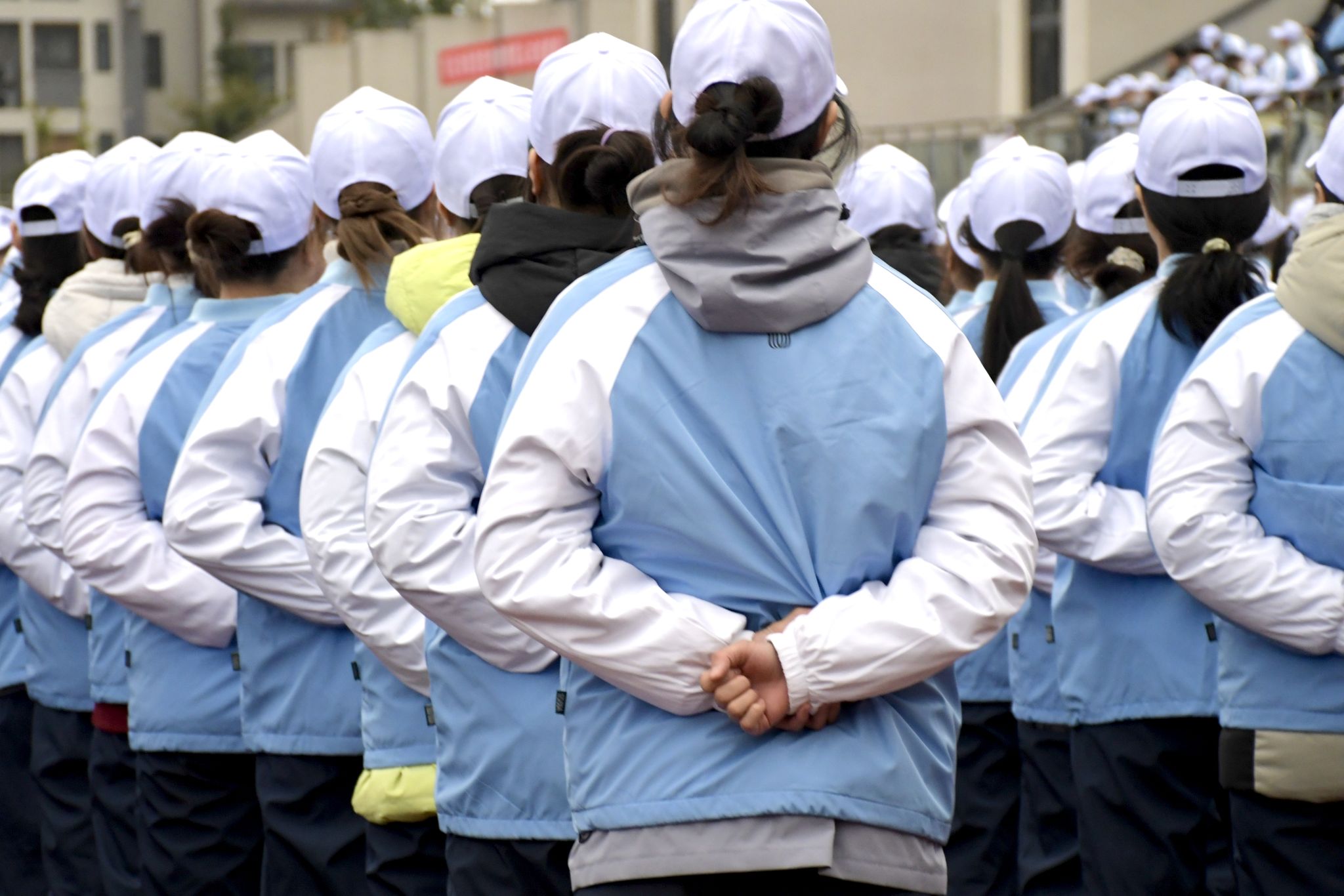 蓝白相间的军训服饰