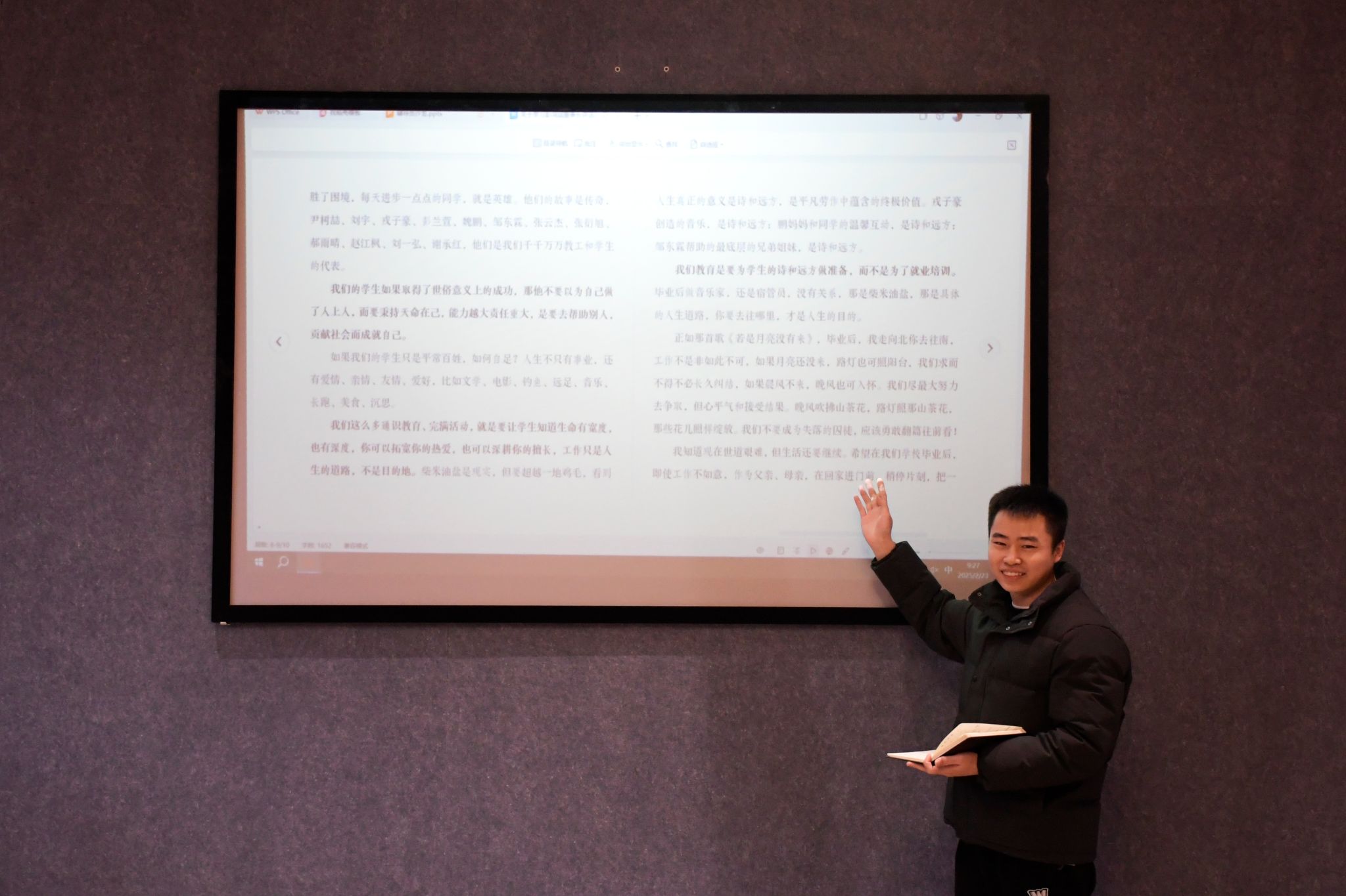 各位辅导员也迅速将学习成果转化为行动指南。孙泽宇老师提出以“诗与远方”为引,助力学生书写人生传奇,找到属于自己的幸福与成功。邱璐老师则强调“天命在己”理念,主张通过心理辅导助力学生“翻篇向前,向阳而生”。代敏老师则提出自己对工作的思考,认为教育之爱是从“职业培训”迈向“生命培育”,完满教育是在“柴米油盐”中播种星辰大海,将自己的未来方向明确为做学生“人生目的地”的引渡人。