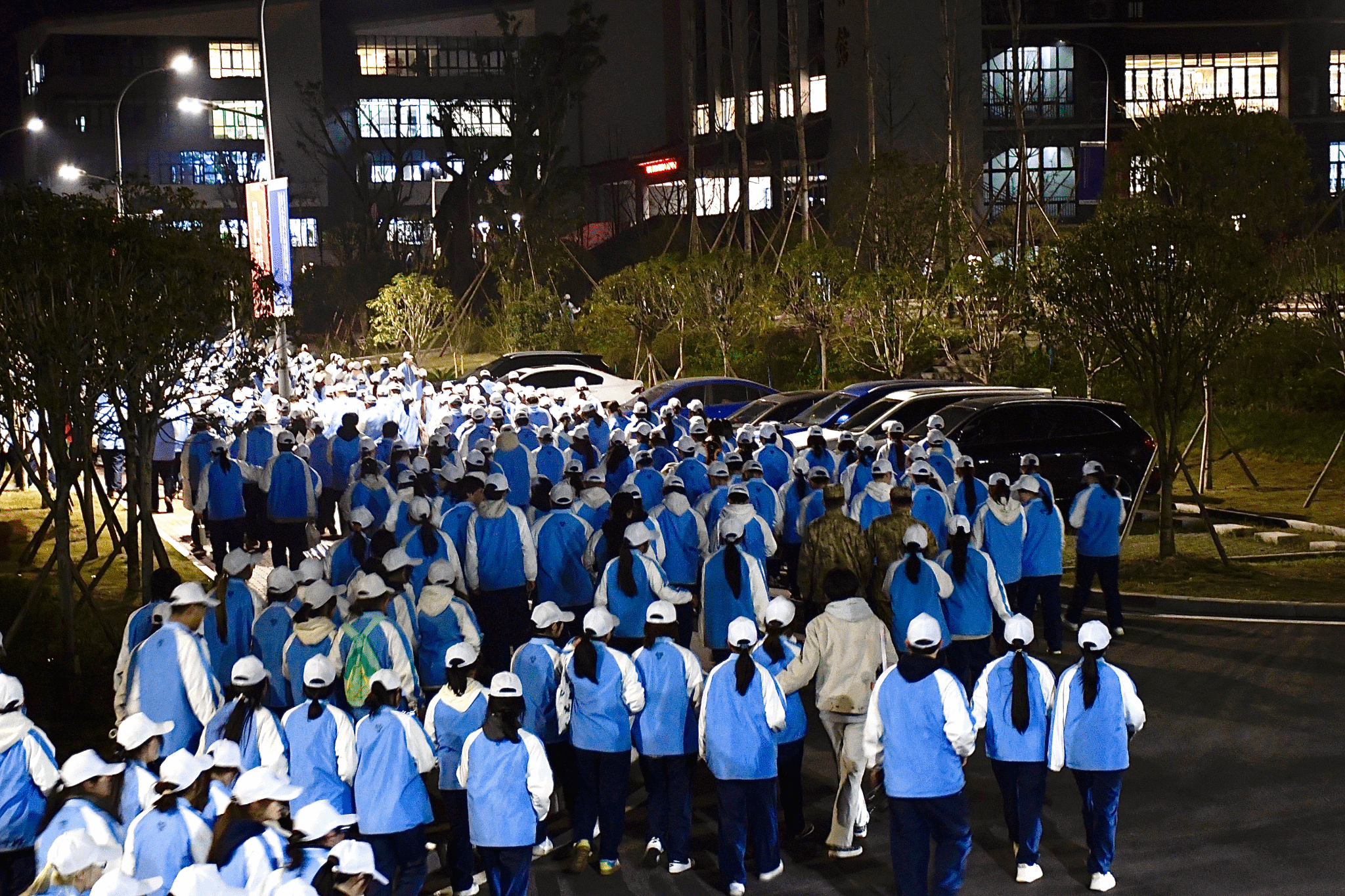 长河落,晓星沉,夜色笼罩校园,盏盏路灯渐亮,结束了一整天的训练日程,大家都三五成群,结伴相归,满载而归。
