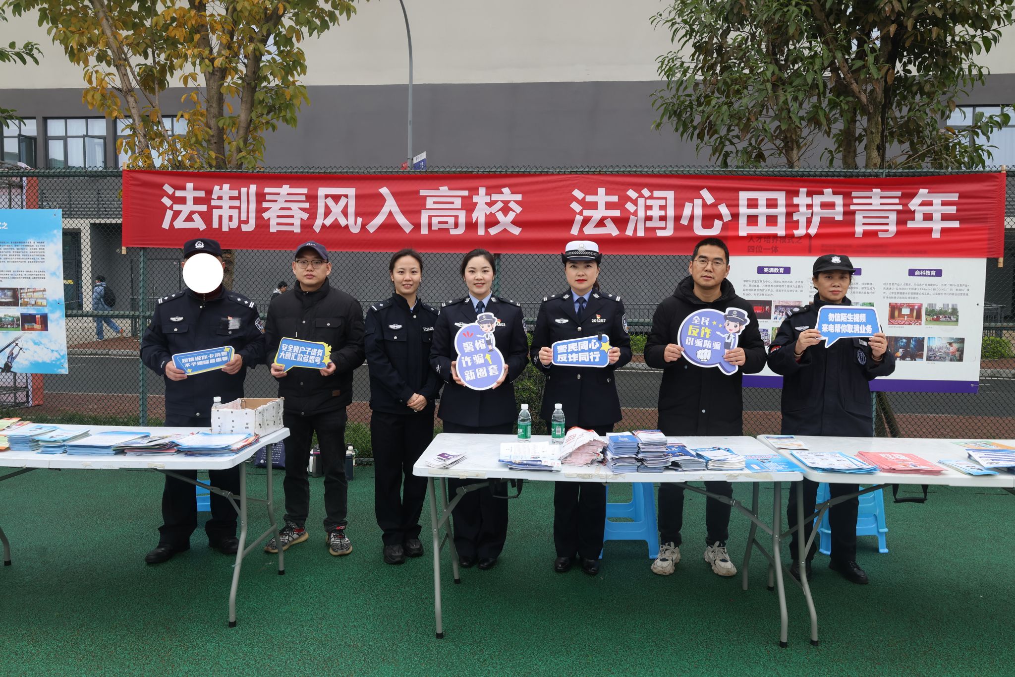 活动现场同步设置法制宣传展台,工作人员通过普法宣传资料发放、设置法制宣传展板等立体化形式,吸引大批学生学习和了解法制知识,图文并茂的呈现方式使晦涩法条变得触手可及,实现法治教育从“单向灌输”到“双向互动”的转变。