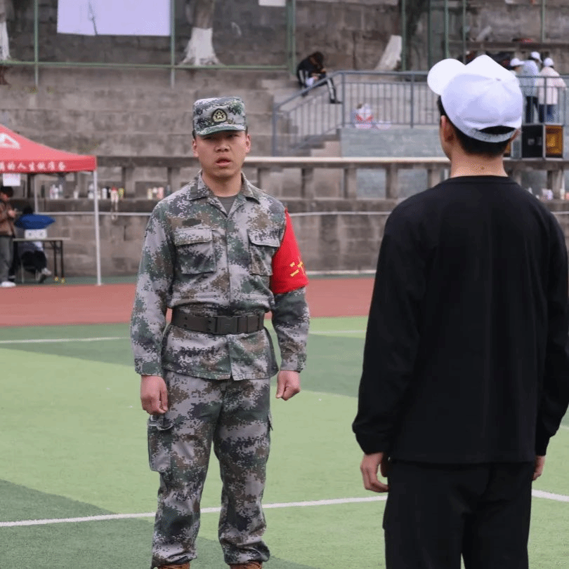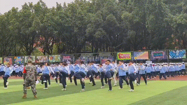 抬腿时带起的风,带过耳畔呼喊的口号,一起卷入尘埃。脚步声“哒哒哒”地砸在地上,格斗招数,手到擒来;军体拳术,气势如虹,连着操场的空气一起颤抖,抬腿、摆臂、落地,行云流水,整齐划一,小tip:别因为走神,而重复动作加加加。