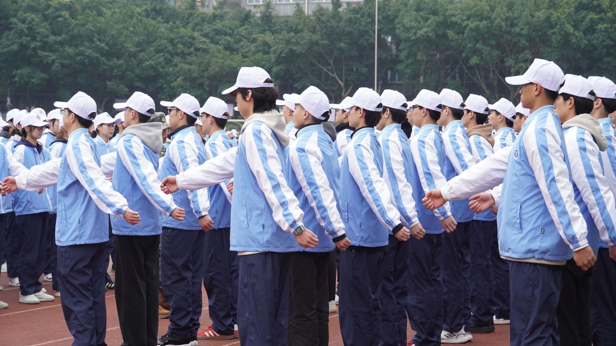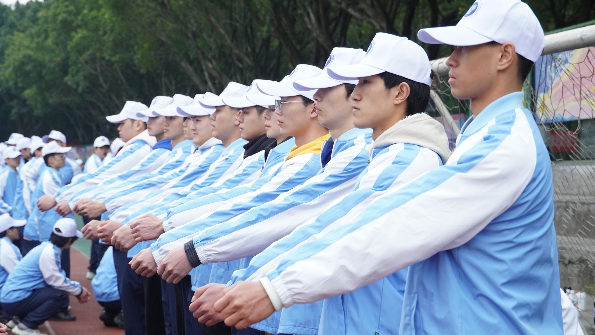 隅中 10℃,时光分秒尽,军姿挺拔立。汗水浸衣衫,意志共磨砺。号角催奋进,热血共青春!