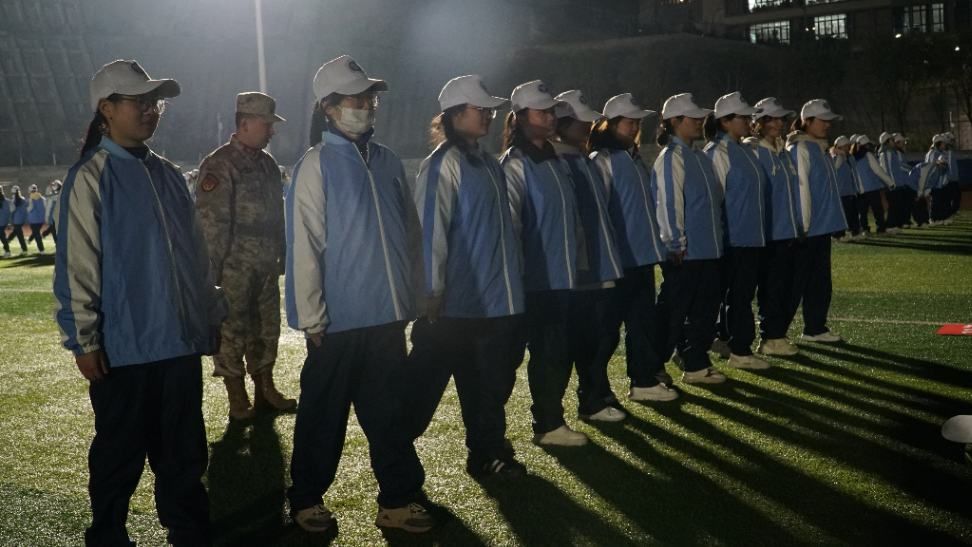 为了更好的训练,教官将每一排同学单独引领而出,展开精细训练,从摆臂的高度、幅度,到步伐的大小、节奏,都一一耐心讲解并示范。同学们全神贯注,紧跟教官的指导,不断调整自己的动作,力求做到整齐划一。尽管天色已暗,大家的训练热情却丝毫不减。