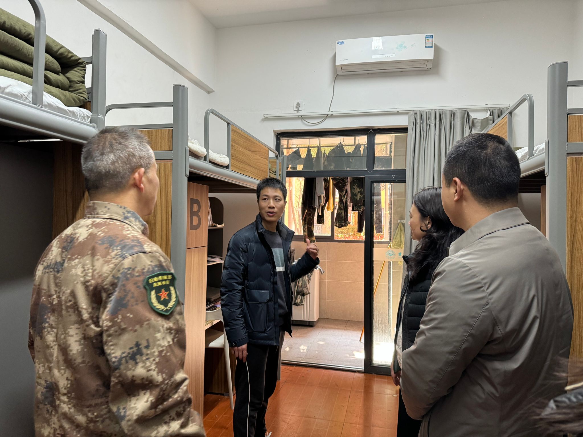 交流团队先后参观了军士生标准化宿舍及部分学生宿舍。机电职业技术大学打造的“军营式生活社区”——床铺军被棱角分明、生活用品定点定位,走廊文化墙集中展示优秀军士生成长轨迹,配合一日生活准军事化管理制度,展现出“环境育人、管理塑人”的鲜明特色。学生处处长李云杨介绍,学校目前将国防教育融入人才培养的各个环节,已经取得了一定成效,学校今年春季入伍军士生500余人,普通学生近三年入伍近900人,学校先后获得“全国十大特色学校”“国防教育先进单位”等称号,入伍学生综合素质获部队高度评价。