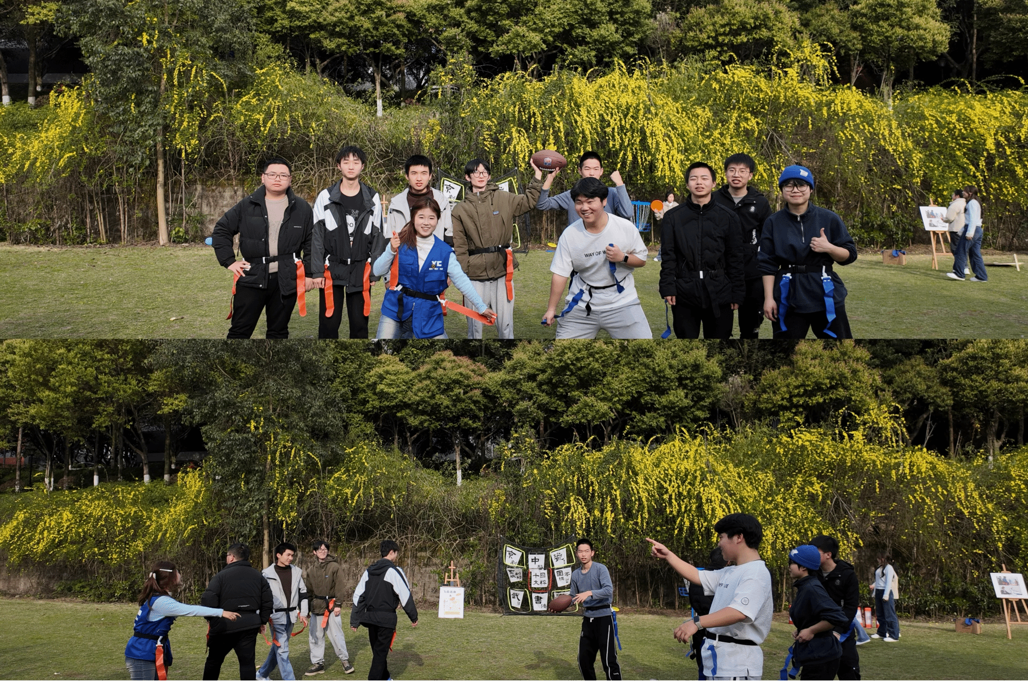 与鱼城书院一起进行“腰旗飞扬”活动,这是一次活力满满的活动,现场设置了专属接球区与发球点,工作人员从发球点精准抛出橄榄球,可爱学子们在接球区内全神贯注、积极跑动接球。这一创新活动打破了传统运动模式,以独特的形式激发学生参与热情。在享受运动乐趣的同时,同学们也在相互协作与竞争中,培养了积极心态,增强了团队精神,丰富了他们的内心,更为以后的成长铺上了花朵,一路前行。