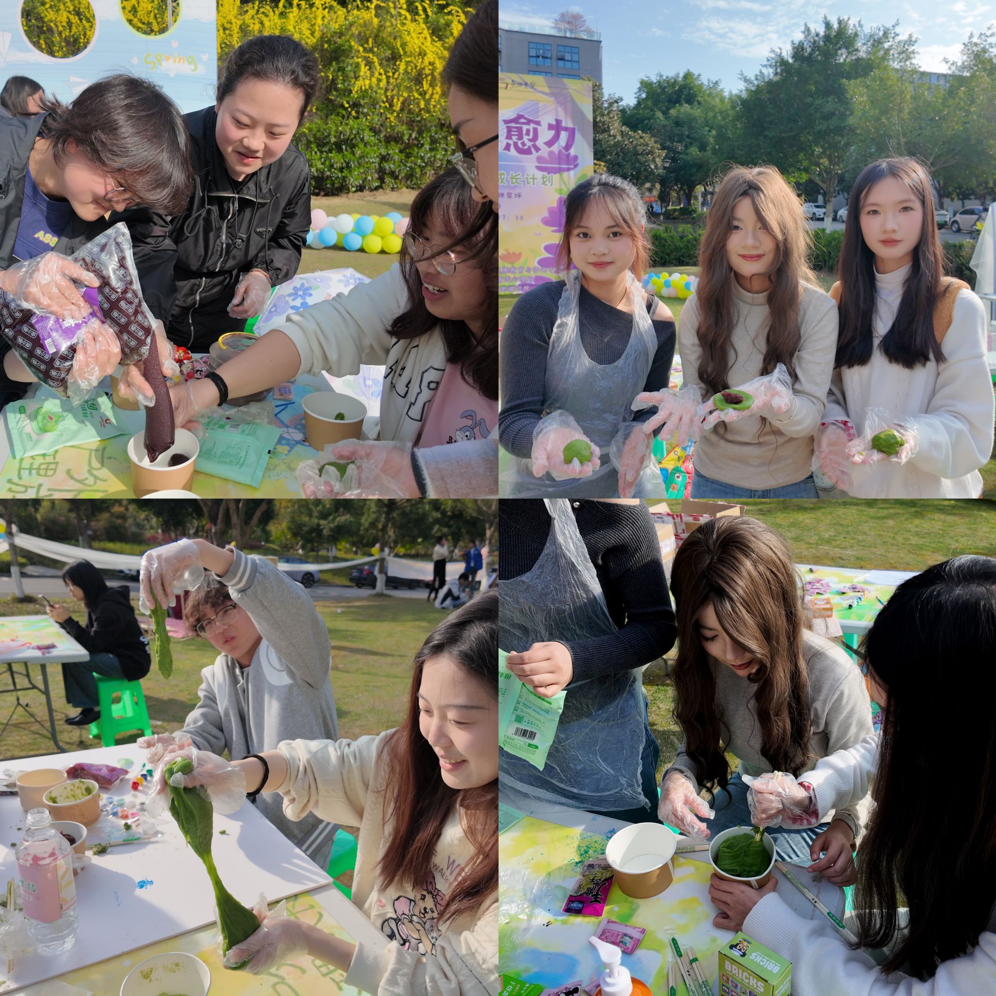 包青团活动中,学生们围坐在桌子旁,分工协作揉面、调馅、塑形。手法熟练的同学主动指导新手,大家互帮互助,现场弥漫着青团的清香。活动通过劳动实践与团队互动,让学生在轻松氛围中感受协作的温暖。