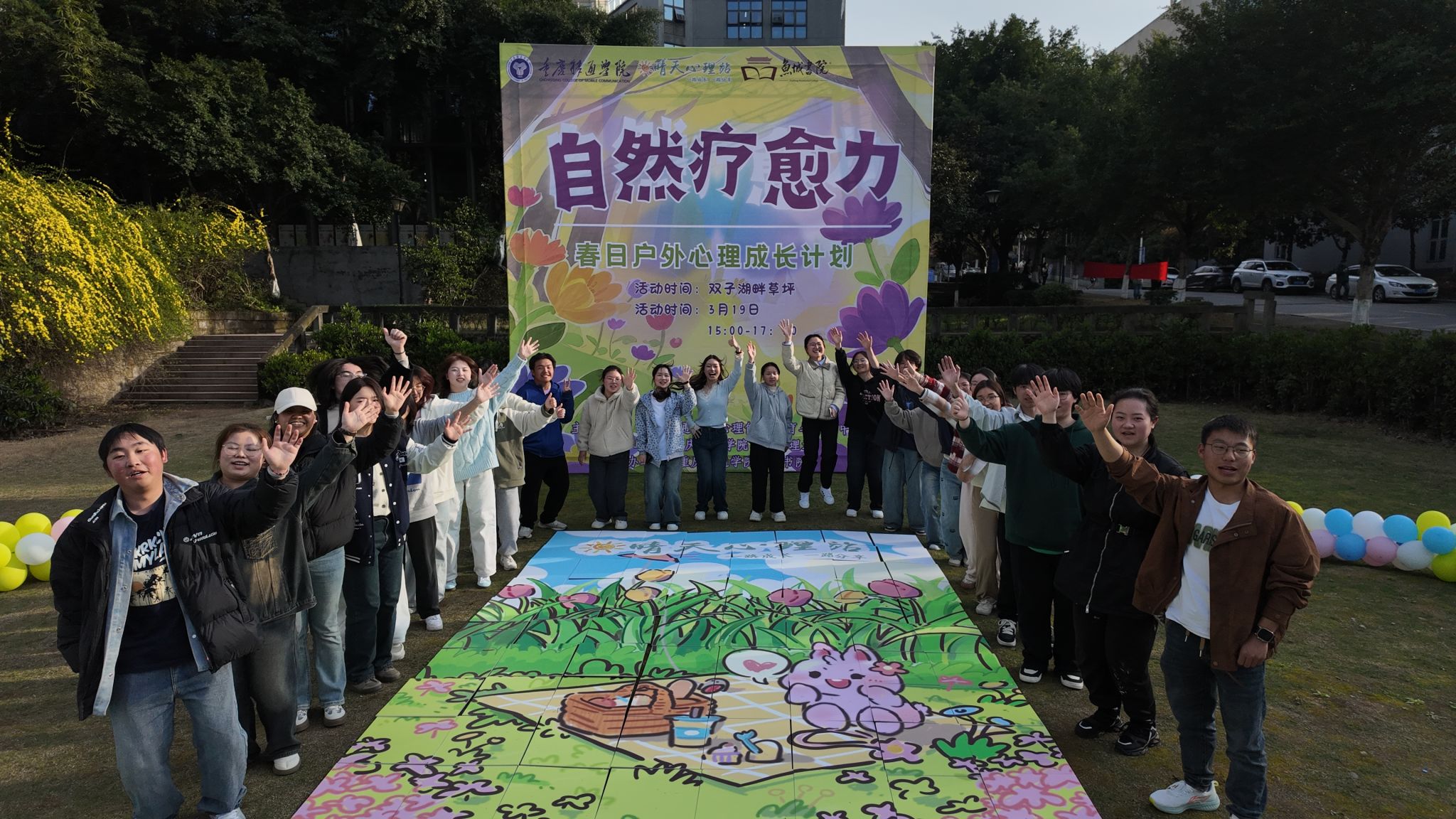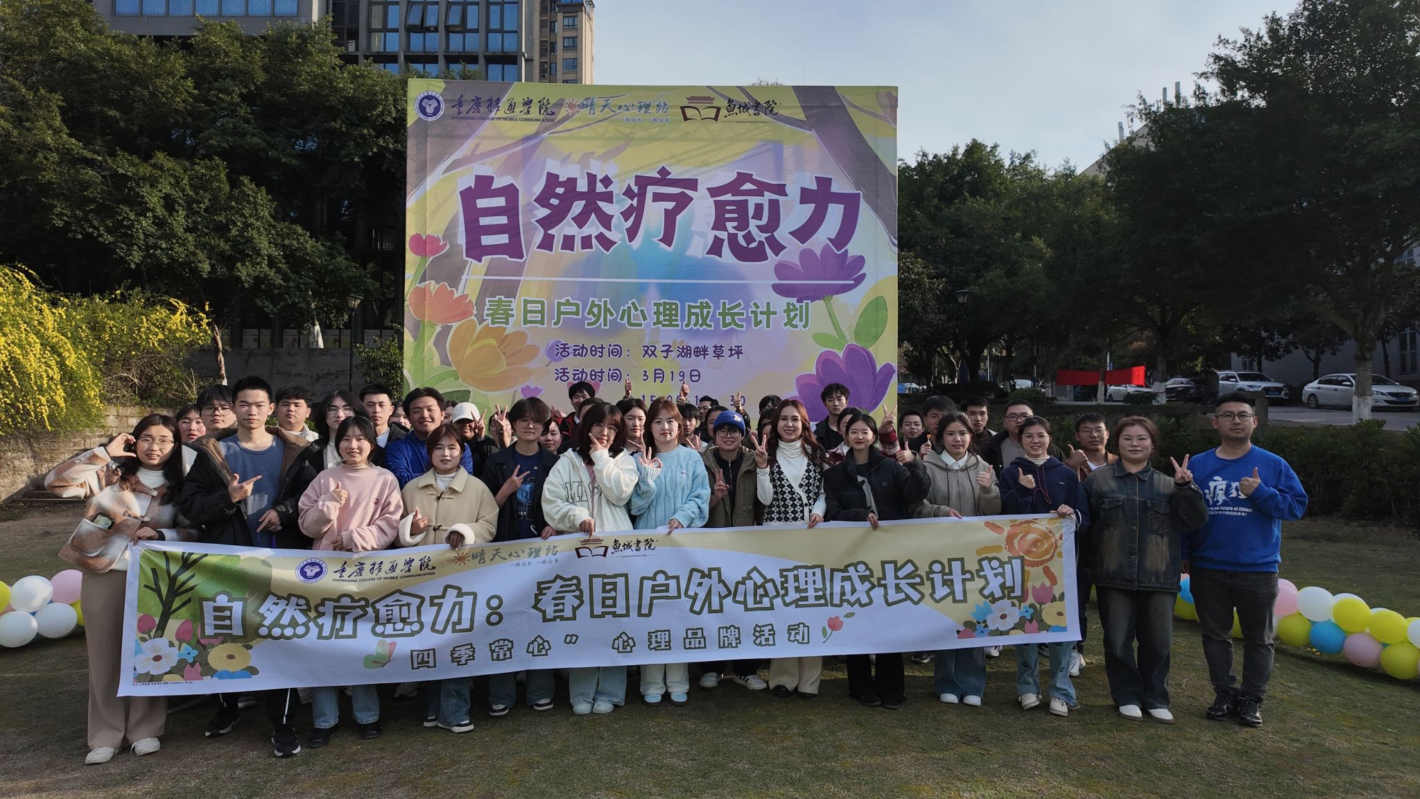 以"四季常心"心理品牌活动为引领,我校心理健康教育与咨询中心于3月19日15:00在双子湖草坪启动"自然疗愈力:春日户外心理成长计划"专项活动,旨在提升大学生心理韧性、强化协作意识、塑造正向生命观。本次活动由重庆移通学院学生处心理健康教育与咨询中心主办,重庆移通学院鱼城学院协办,重庆移通学院晴天心理站承办。通过"释放压力·重建联结·自我探索"三维赋能体系,引领师生在春草芳菲的校园中感知自然疗愈能量,实现身心协同成长。此次春日计划本次活动以“释放压力·重建联结·自我探索”为出发点,让师生们在清新烂漫的春日校园,感暖阳花开,舒心灵翠绿。