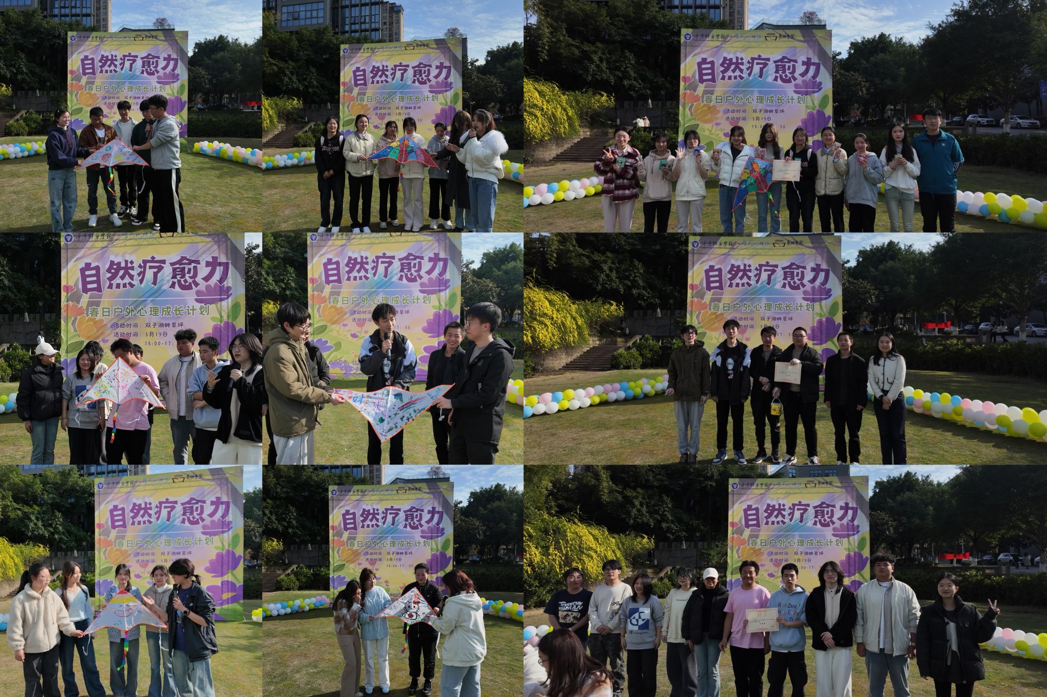 此次“自然疗愈力”春日户外心理成长计划,以自然为媒介、以体验为载体,创新心理健康教育模式。通过八段锦、风筝创意表达、青团协作制作及纳斯达巨画集体创作等多元活动,引导学生从身体感知、情绪释放、团队互动等多维度实现心理赋能。活动帮助学生缓解学业压力、增强人际联结,更以沉浸式体验传递“自然疗愈”理念,推动心理健康教育从课堂走向户外。