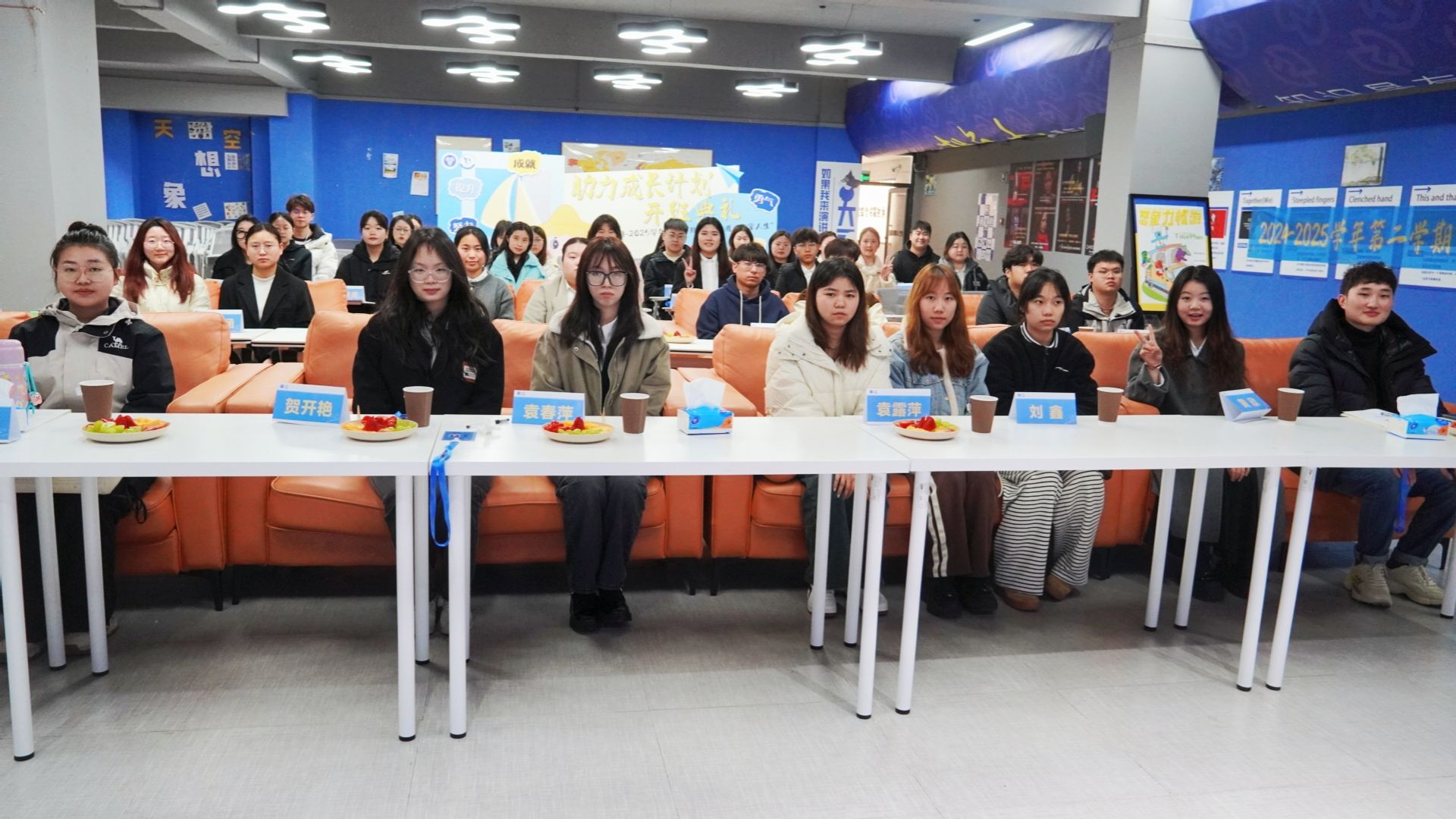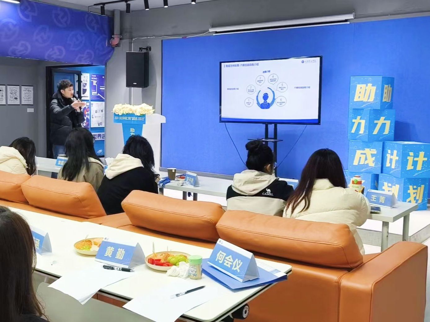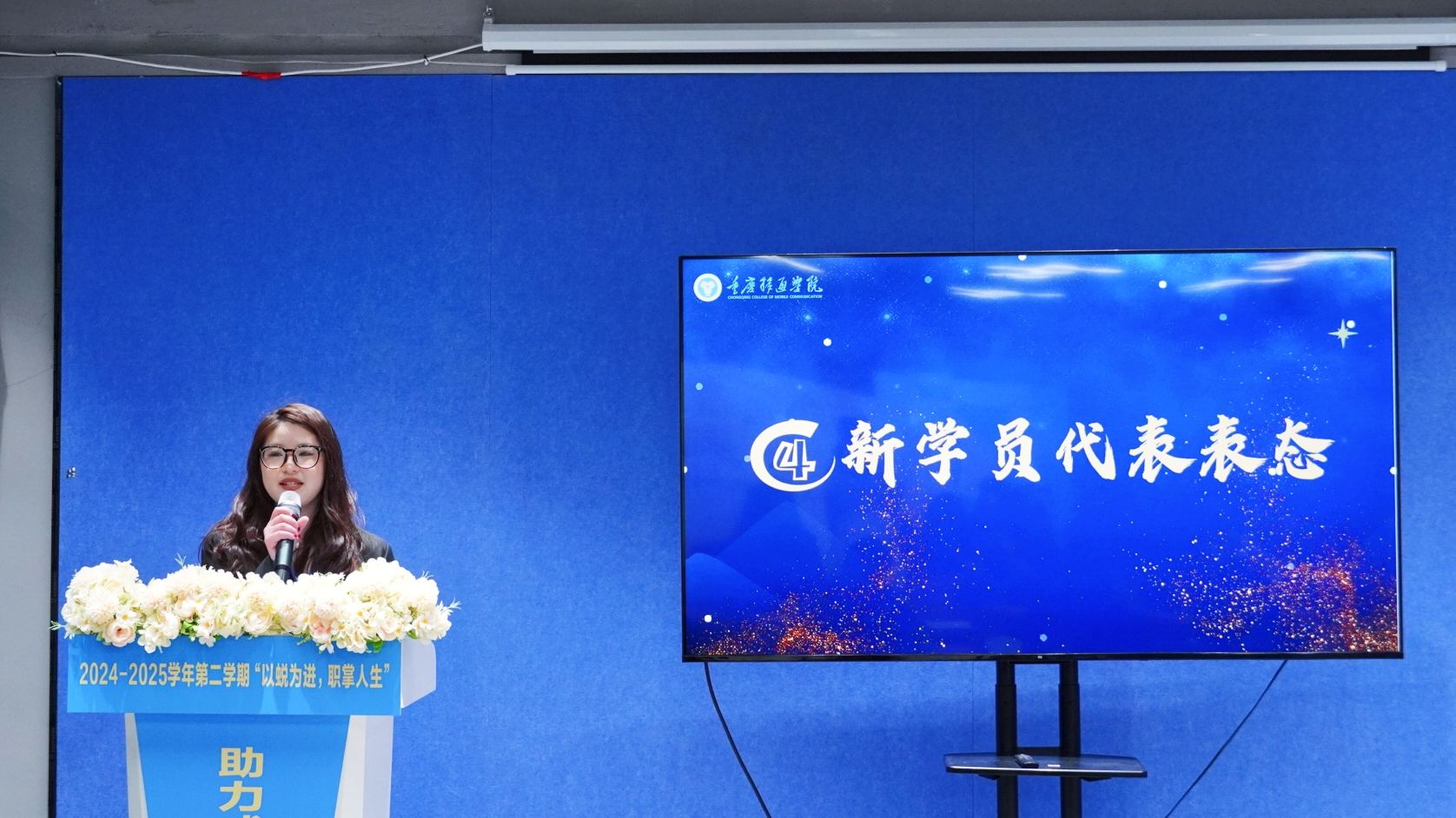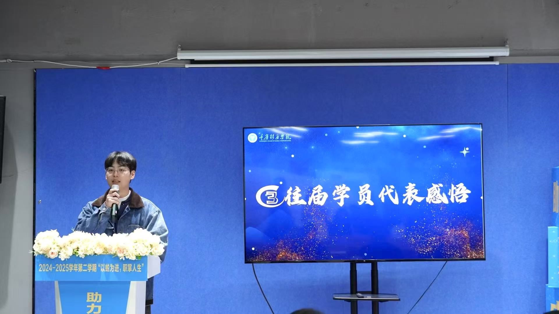 典礼伊始,勤工助学中心主任王琴宣读开班决定,希望同学们珍惜学习机会,借培训明确职业规划,自信踏上职场路。学员牌的授予标志着新一届学员正式成为助力成长计划大家庭的一员。来自数字经济与信息管理学院2021级信息管理与信息系统专业的张云龙作为往届优秀学员代表分享了参与助力成长计划的收获和感悟。他表示,助力成长计划不仅帮助自己提升了就业技能,还坚定了职业目标,进而让自己成功就业;来自通信与信息工程学院2022级通信工程专业的何会仪作为新学员代表进行了表态,表达了对学校和老师的感谢,以及珍惜机会、努力学习、提升自我的决心。