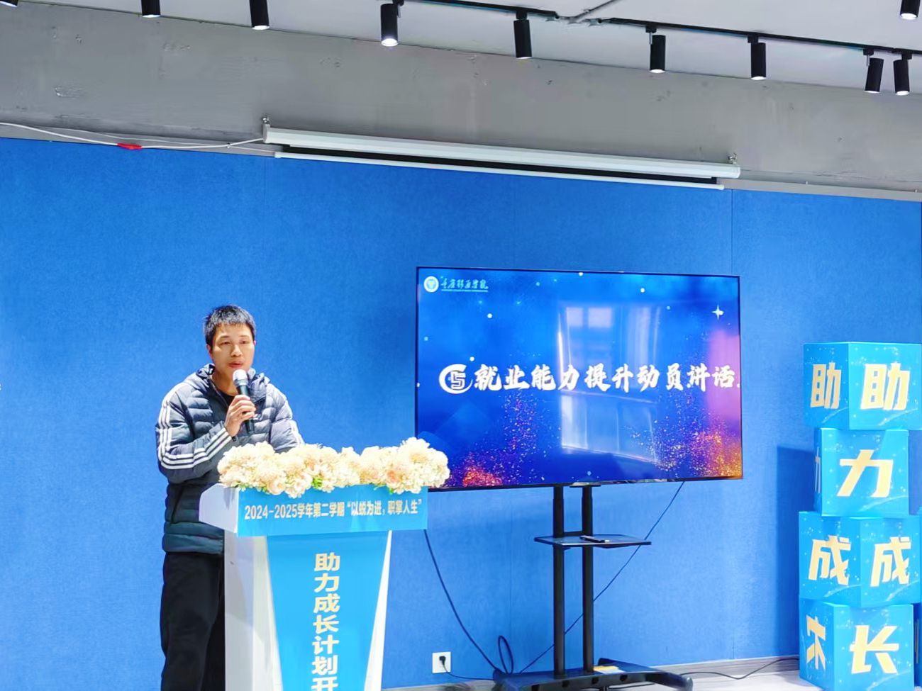 为更好地帮助我校2026届家庭经济困难学生和少数民族学生了解就业市场,掌握求职技能,明确职业规划,助力他们在未来的职业生涯中自信前行,3月19日,学生处在天空书院长空报告厅成功开展了“以蜕为进,职掌人生”助力成长计划开班典礼暨第一期课程。学校副校长陈仲华、学生处处长陈帅、各二级学院学工副院长、就业创业办公室主任和授课教师代表等嘉宾出席了此次活动。