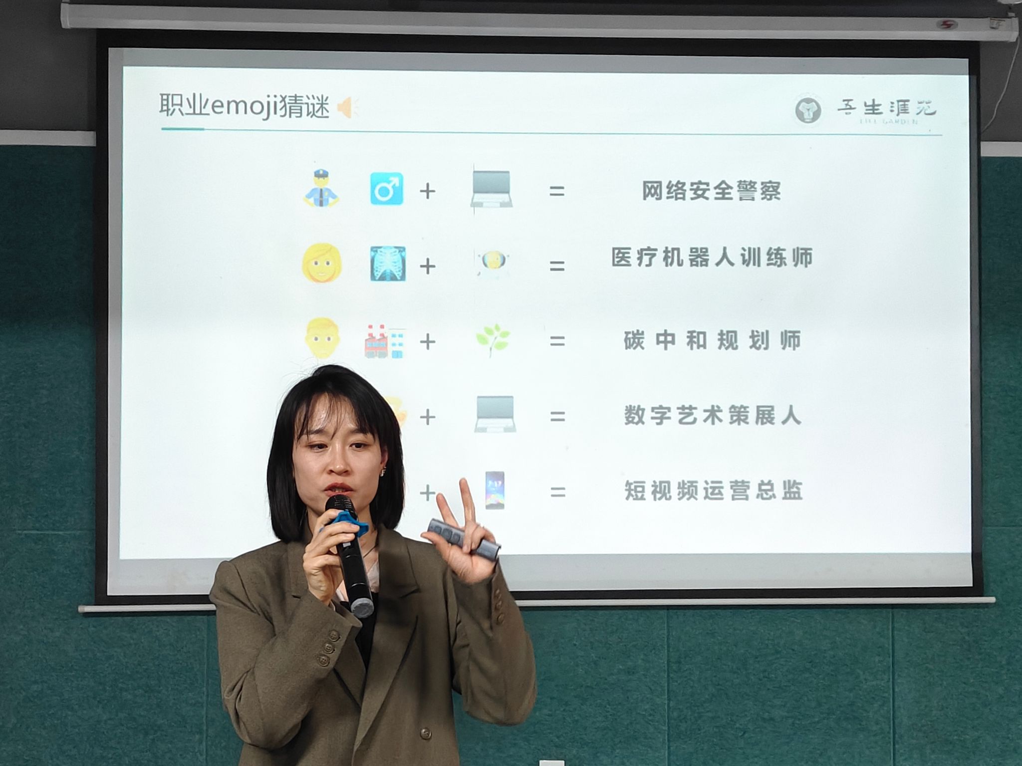 付海明老师以“职业大观园”和“职业emoji猜谜”小游戏开启互动环节,借助霍兰德职业兴趣测试引导同学们深入剖析自身性格特点,探寻匹配的职业岗位;以超能力大数据表格中的两个问题为导入,带领同学们回忆自身特点、深度挖掘异常能力,并利用动态决策模型结合能力供给分析,让同学们清晰认识到自身优势与不足,针对认识不足的同学还进行一对一交流,通过“兴趣考古三步法”引导学生回溯过去专注时刻,如“你有多少好朋友呢?你和你的好朋友能做到无话不谈,那社交就是你的隐藏超能力呀!”这种将抽象特质具象化的引导方式,使原本对自身能力认知迷茫的同学恍然大悟,意识到与好朋友彻夜长谈是自身优秀能力的体现。