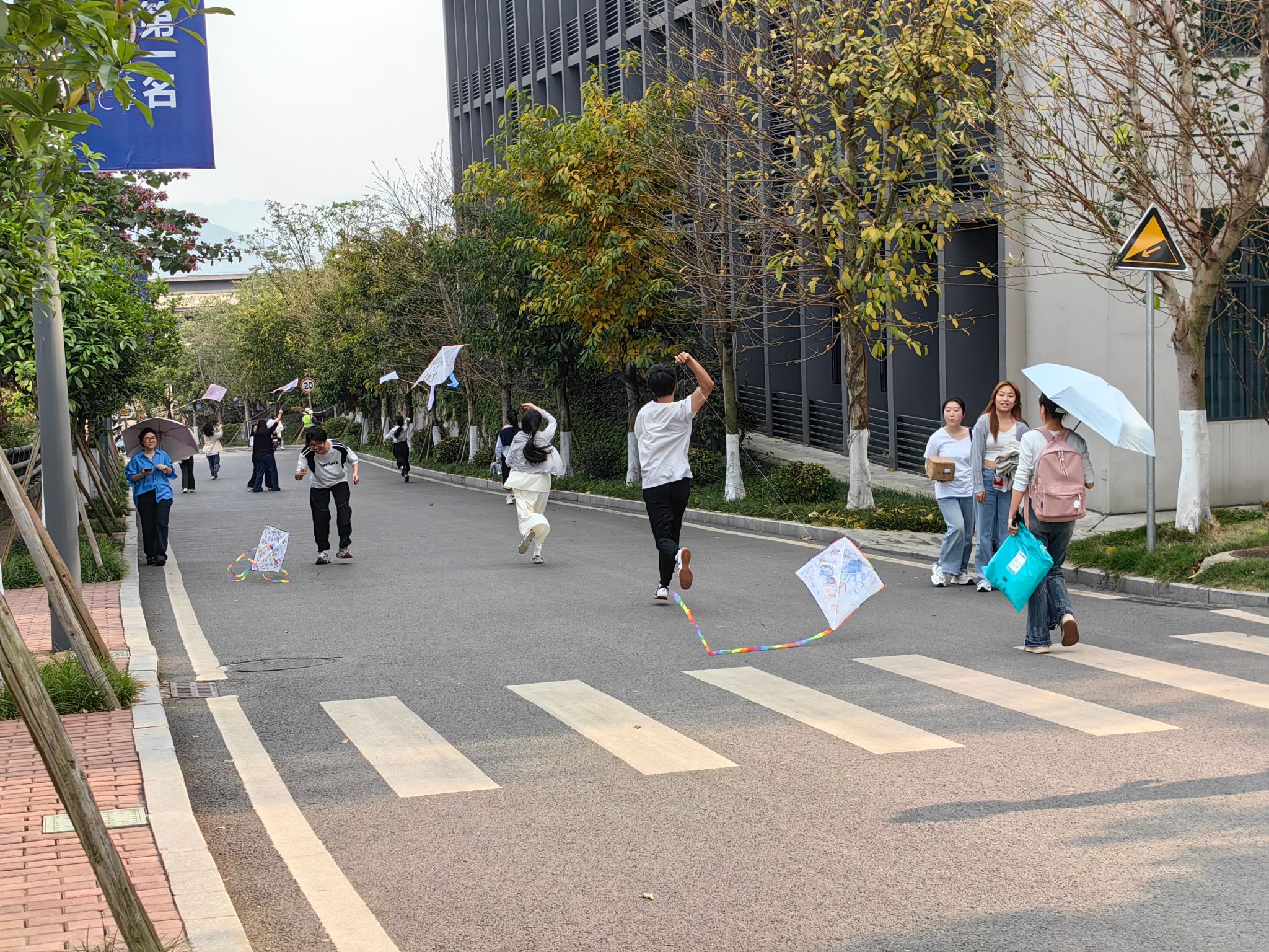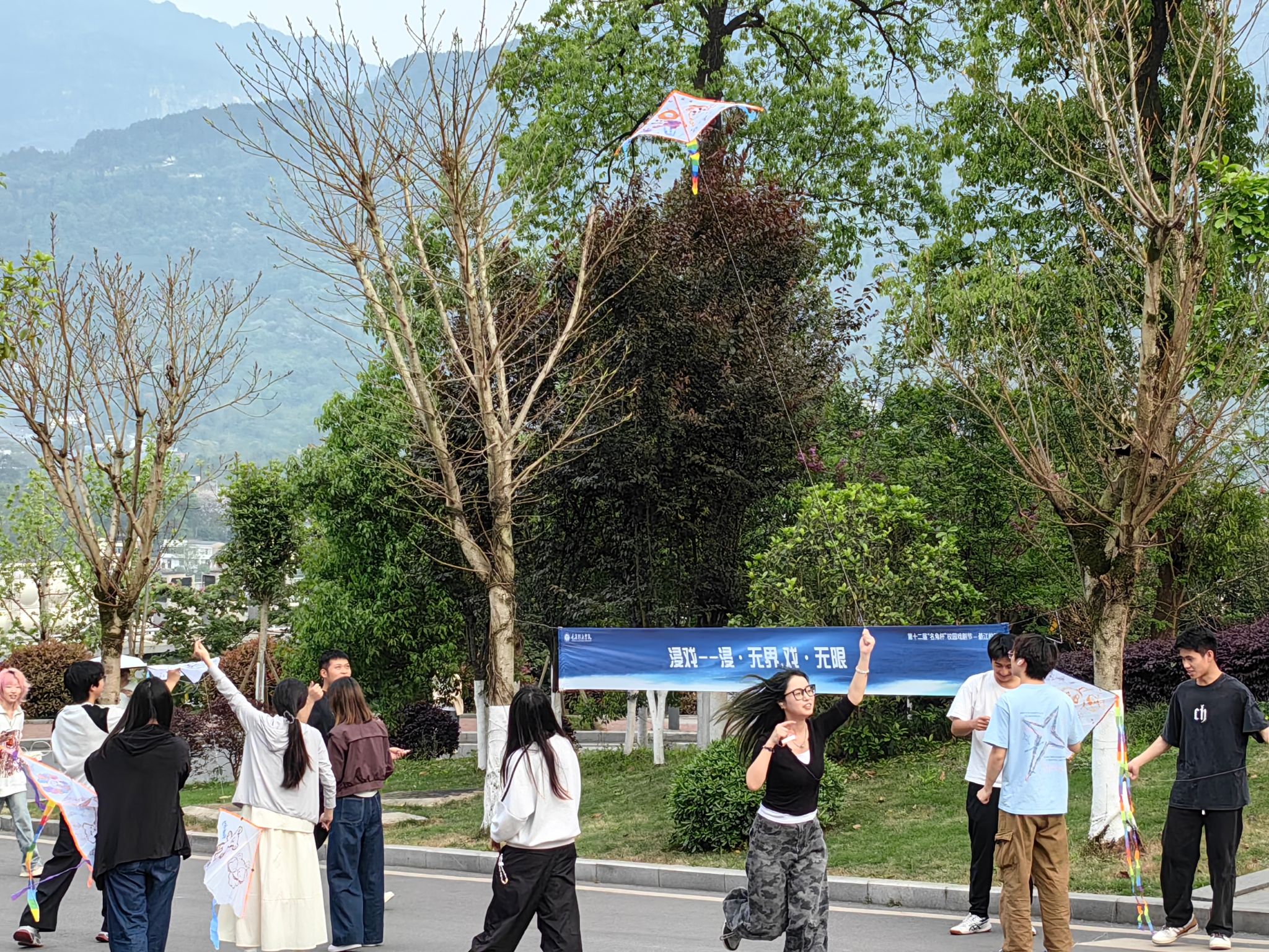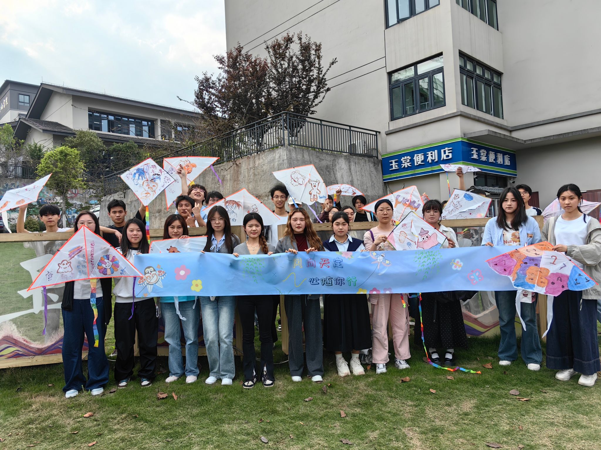 广阔的草坪上,微风轻拂,正是放风筝的好时机。计算机学院吴迪老师也参加了这次活动,她表示“通过绘画将情绪具象化。放风筝不仅可以增强同学们之间的相互配合,增强归属感还可以吹吹风、出出汗,比单纯跟学生聊天效果好多了。”看着自己的风筝在天空中翱翔,同学们仿佛回到了童年那个无忧无虑的自己。此时,天空中满是色彩缤纷的风筝,它们与蓝天白云相互映衬,构成了一幅美丽而和谐的画面。