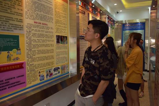 随后,戒毒所干警带领同学们来到该所设立的毒品预防教育宣传基地,参观了禁毒图片展,用图片的形式生动地展示了吸毒人员参与吸、贩毒前后的生活状况,并借助基地内的毒品及吸食工具模型、吸毒血液循环人体模型,结合发生在身边的经典案例,向同学们介绍毒品的危害和种类及给个人带来的严重危害。随后通过教育视频中一些戒毒人员现身说法,用自己的亲身经历敲击着每位同学的内心。
