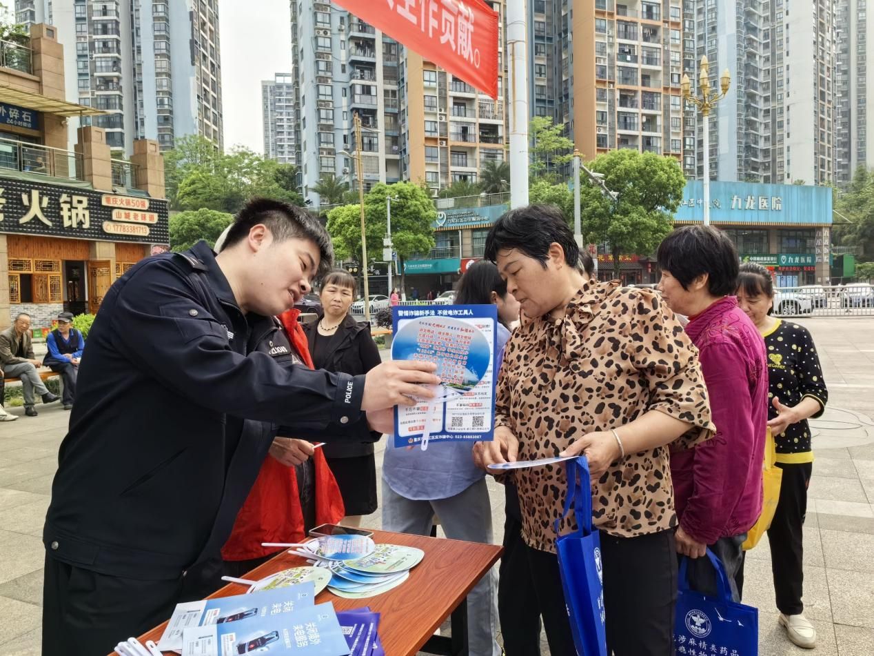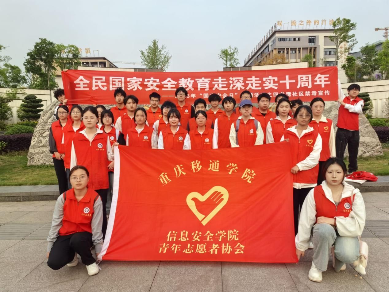 在构建健康和谐社会的征程中,禁毒工作始终是至关重要的一环。毒品的存在,不仅威胁着个人的生命健康,更对整个社会的稳定与发展构成严重威胁。为切实加深社区居民对毒品危害的认识,全方位提高居民自我保护能力,从源头上降低涉毒风险,2025年4月11日,重庆移通学院信息安全学院团总支青年志愿者协会的志愿者们,满怀热忱与担当,走进綦江区文龙街道回龙湾社区携手重庆市綦江区文龙街道办事处、回龙湾社区的工作人员,开展了一场意义深远的“青春护航,无毒社区”志愿禁毒活动。志愿者将毒品危害、新型毒品识别等知识,以生动朴素的语言传递给社区居民,创建以创新宣传破传统局限、禁毒教育全面覆盖且成效卓越的社区。