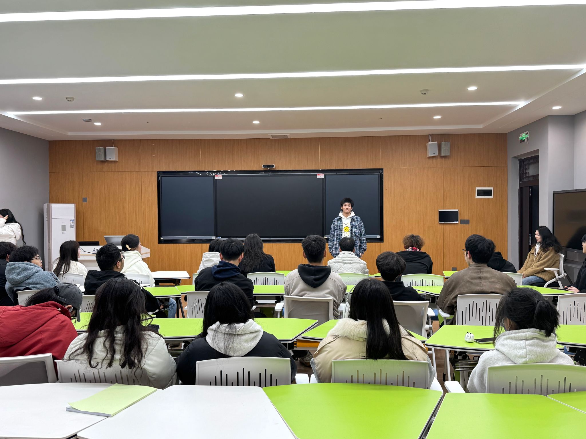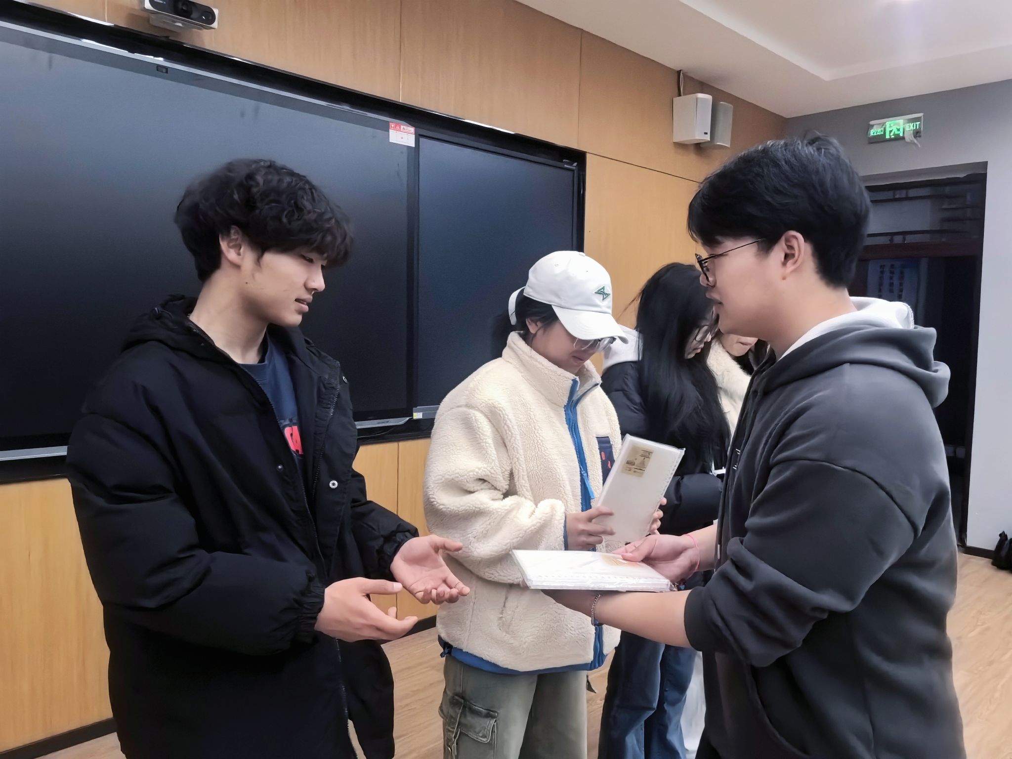 活动拉开序幕前,天空书院 301 教室热闹非凡。学生处勤工助学中心外联部与网宣部干事们齐聚于此,迅速以队长为中心整齐落座。网宣部部长李航宇、谢知霖组织破冰活动,帮助大家拉近距离。干事们依次自我介绍,分享勤工助学的难忘过往,畅聊对捉迷藏追逐赛的期待。欢笑声、掌声交织回荡,轻松愉悦的赛前氛围满溢,奏响活动前奏。