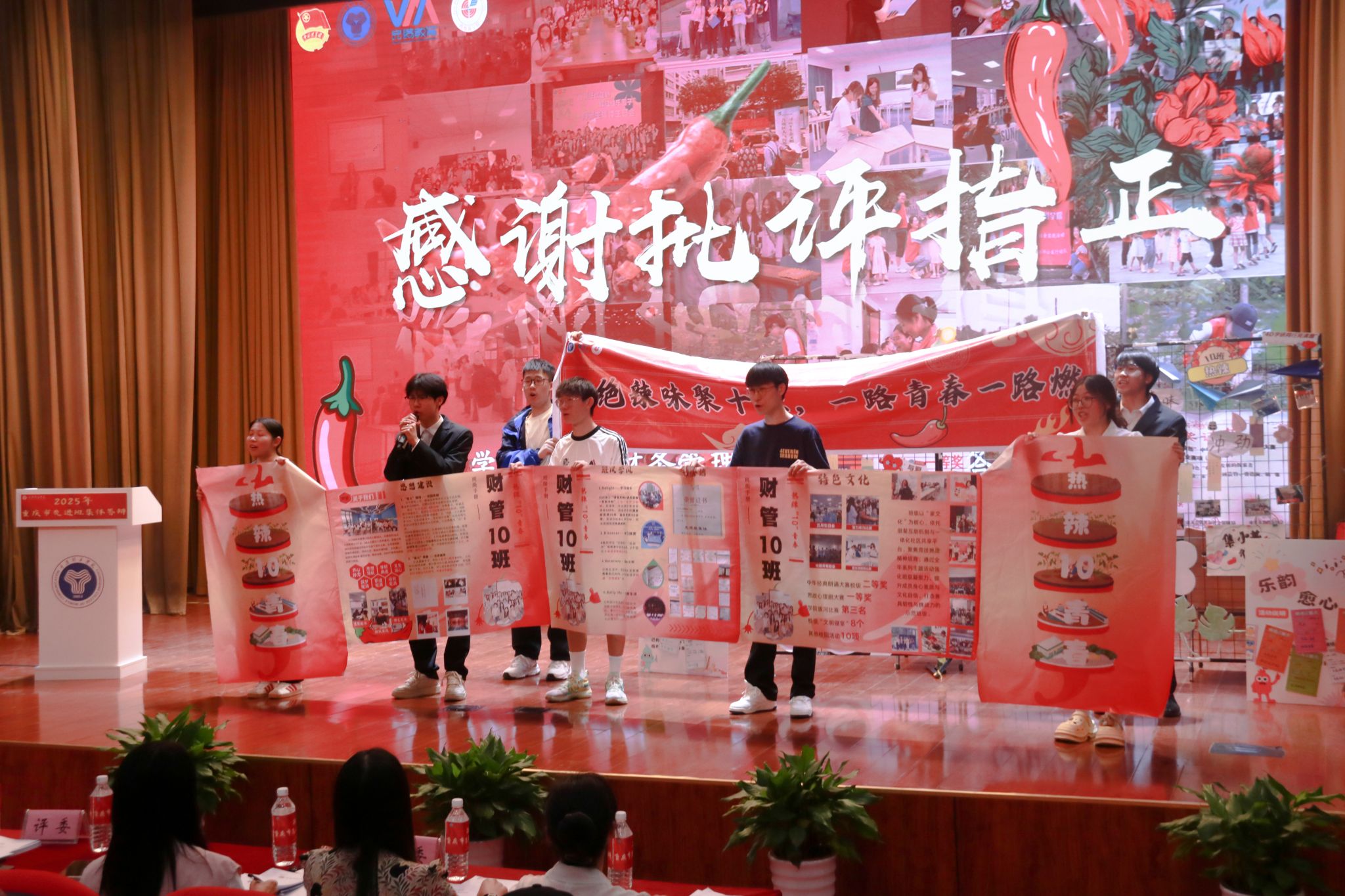 本次答辩分为材料评审与现场展示两个环节。各班级围绕“思想政治教育”“班风学风”“特色活动”三大核心板块,通过PPT展示、脱稿陈述等形式,呈现班级建设成果。2022级财务管理10班以“三绝辣味,热辣滚烫”为创意主线,通过“学术争锋、团旗飘扬、实践淬炼”三个维度,展现班级在学科竞赛、团日活动及乡村振兴志愿服务中的硬核实力;2022级英语10班以“光”的叙事主线,分享了优异的班风学风、竞赛和完满成果;2023级数字媒体艺术2班则以“等枝桠,成繁树”为主题,讲述班级组建、特色实践、国赛获奖的故事;2022级通信工程志向2班借助“笔落惊鸿、装帧艺术、墨韵留香”展现了他们在思想、班风和学风的独特优势;2022级电气5班,通过讲述班级发生的幽默故事,展示在学风建设、班级建设、完满活动的点滴……答辩现场流程严谨、互动踊跃,全面彰显了各班级学子锐意进取、协作共进的良好风貌。