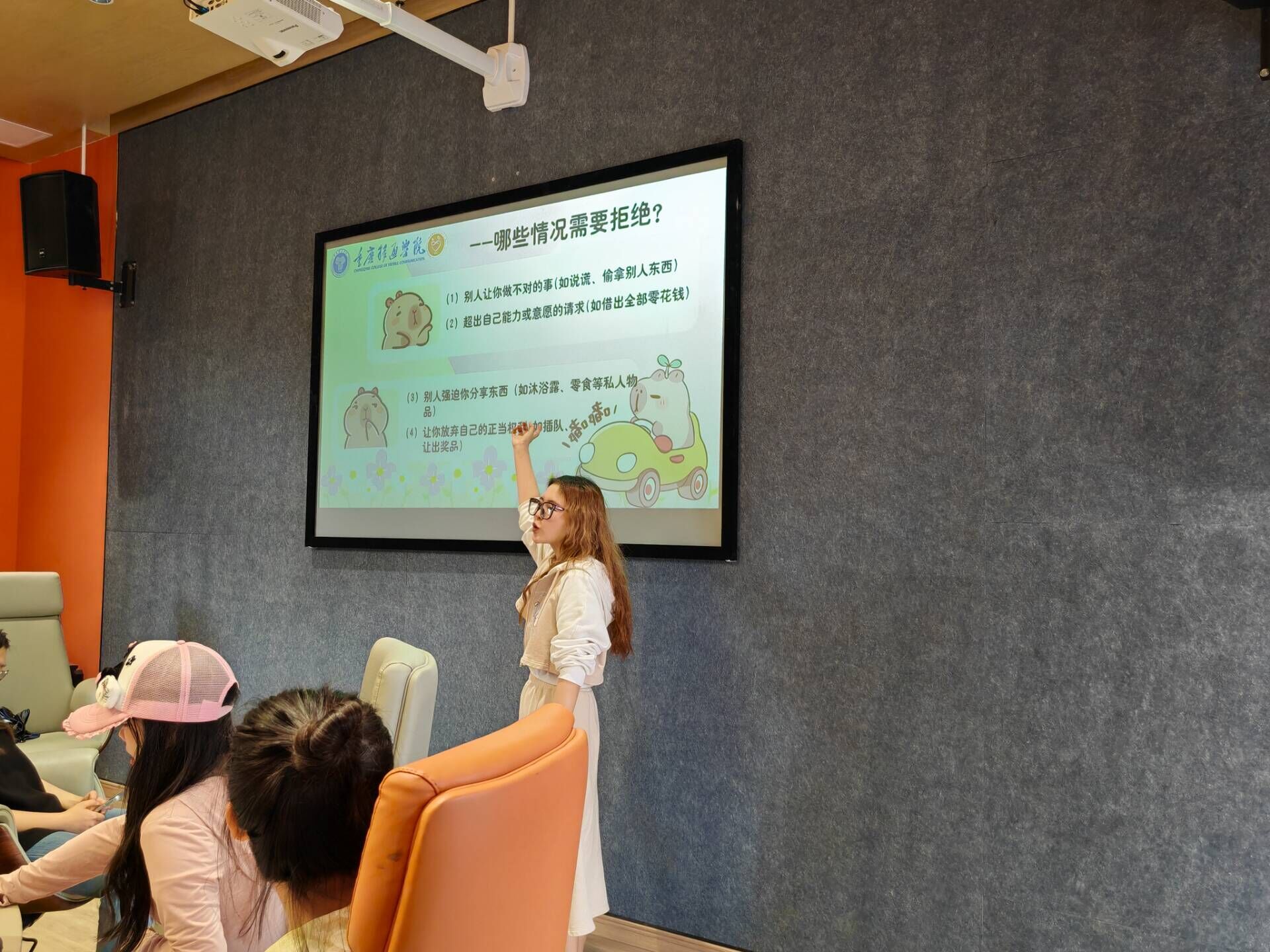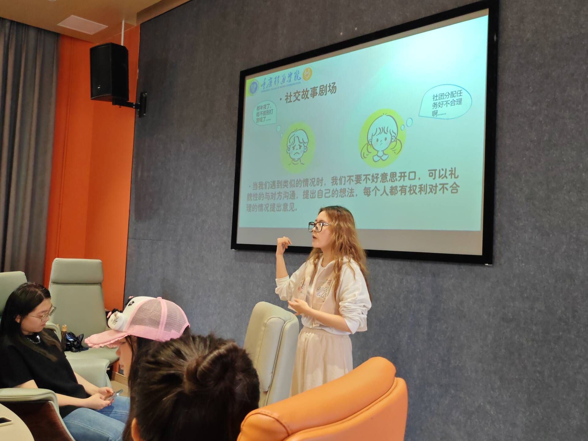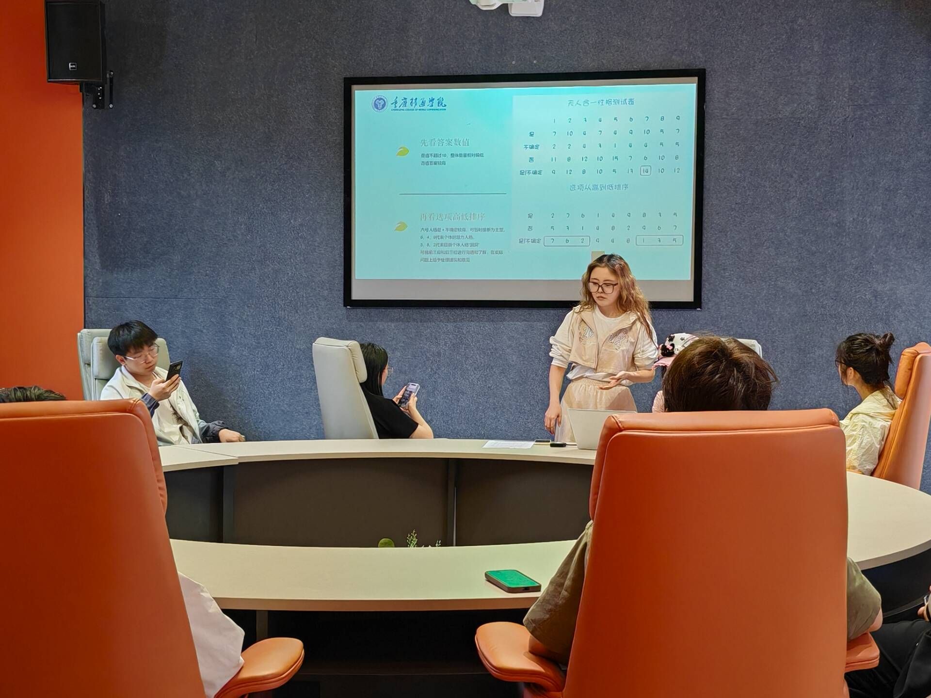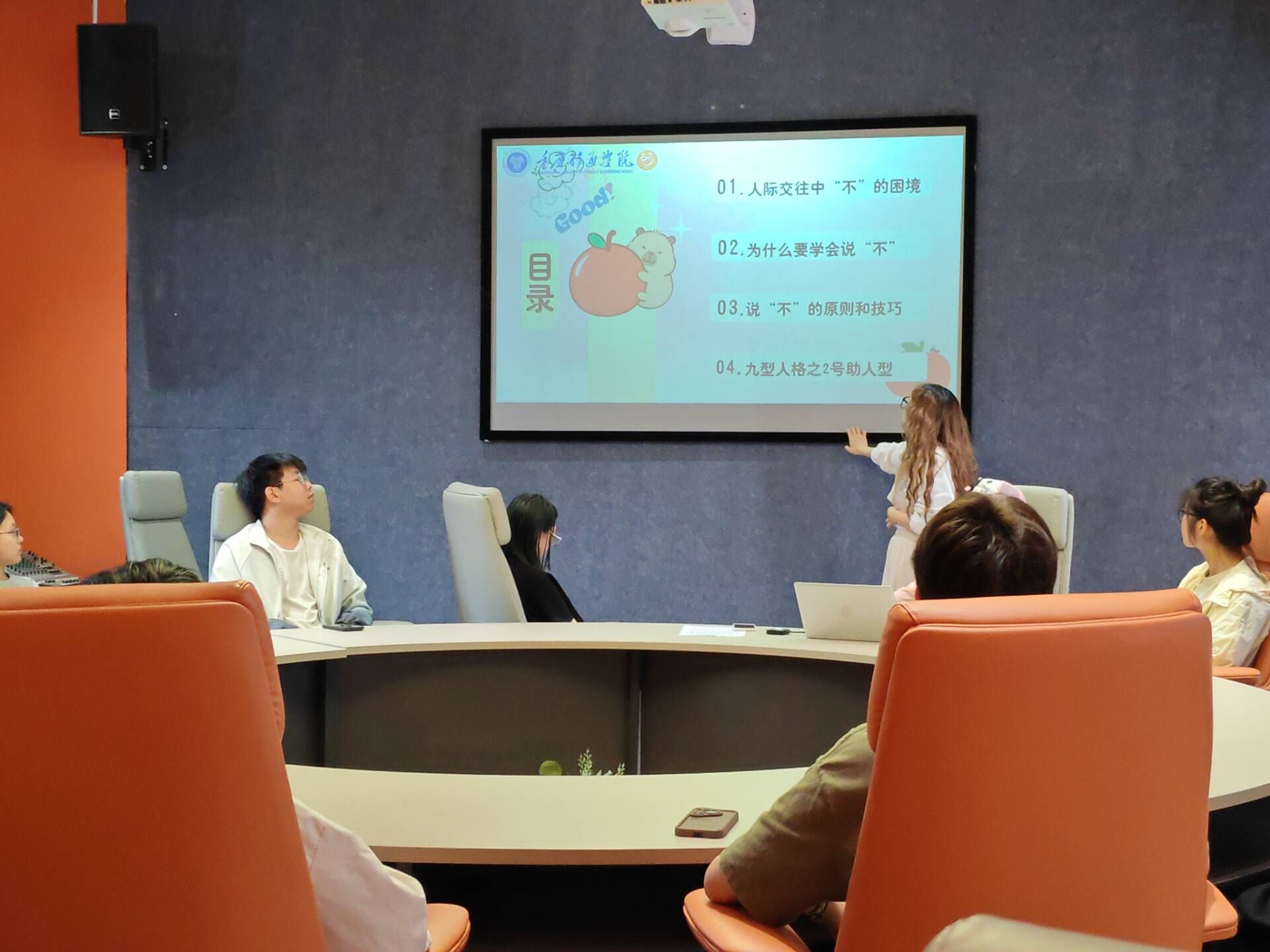 在繁忙的校园生活中,人际交往如同一把双刃剑,既能带来温暖与支持,也可能因难以拒绝他人而产生压力。因此,一场以“学会拒绝”为主题的心理活动于2025年4月15日中午在古剑龙泉会议室悄然拉开帷幕。同学们带着对解决人际交往困惑的期待,陆续走进会议室,原本安静的空间逐渐充满了轻声的交流与期待的氛围。学院心理专项丁滢老师准备带领大家开启这场关于勇敢说“不”的心灵探索之旅,PPT上“说‘不’的智慧”五个大字格外醒目,似乎在预示着这次活动将为同学们打开人际交往的全新视角。