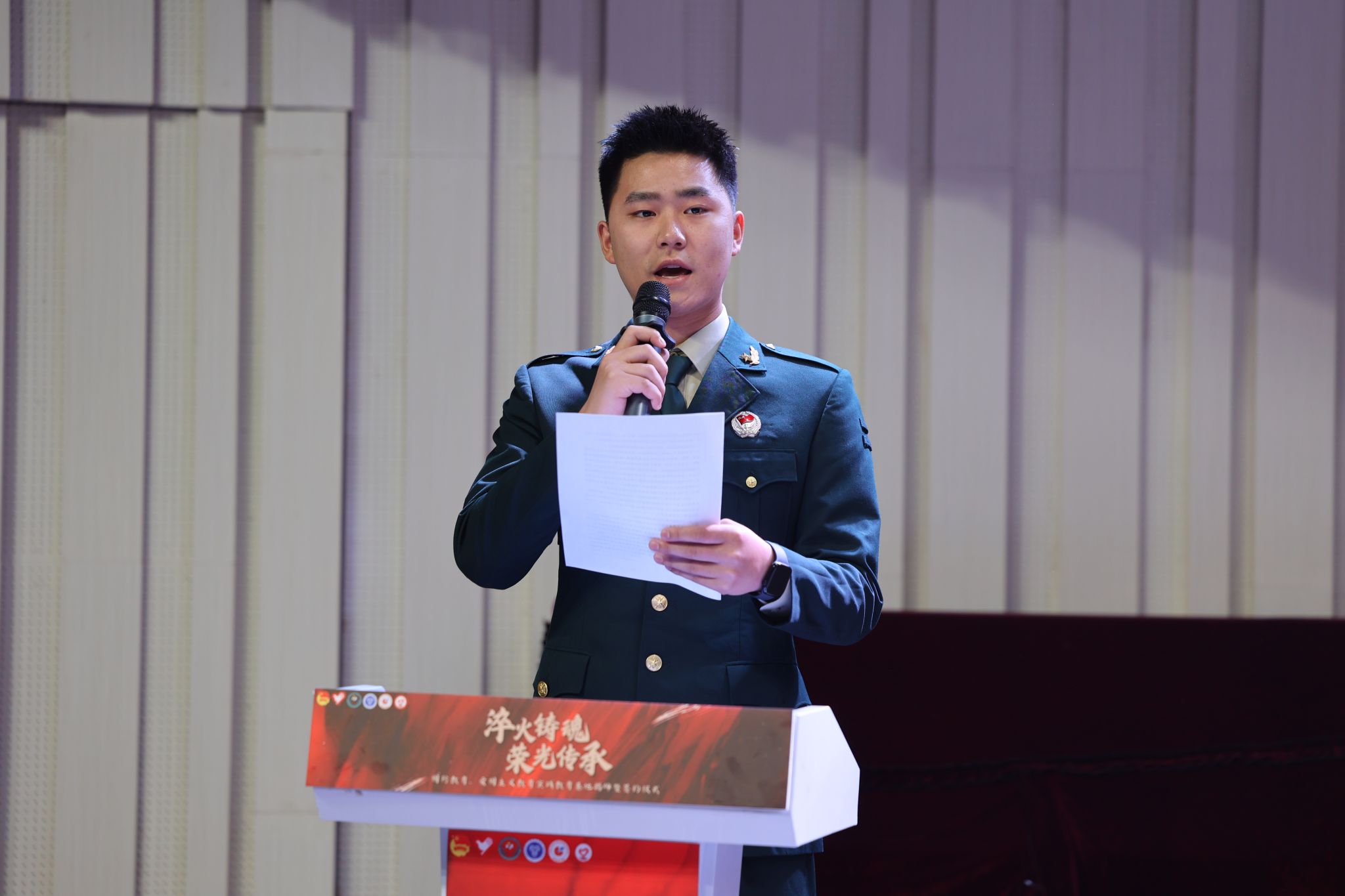 优秀退伍学生代表用亲身经历上演“军旅文学照进现实”,分享投身校园国防事业、立志考研争做榜样的热血故事,“军旅生涯让我深刻体会到,中国青年的模样就是关键时刻顶得上、危难关头豁得出。”他动情地说道。