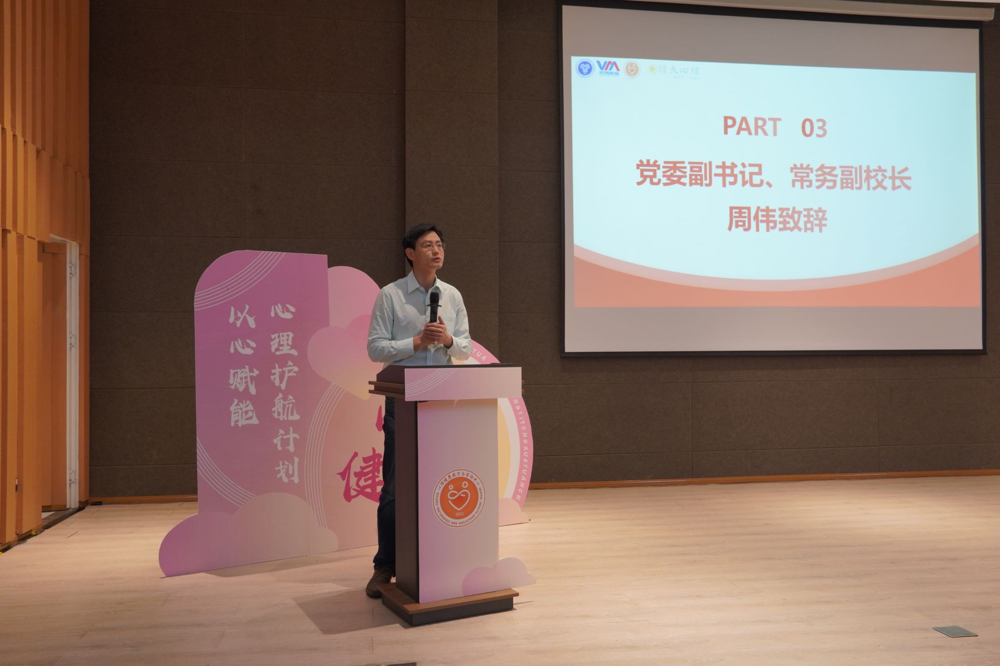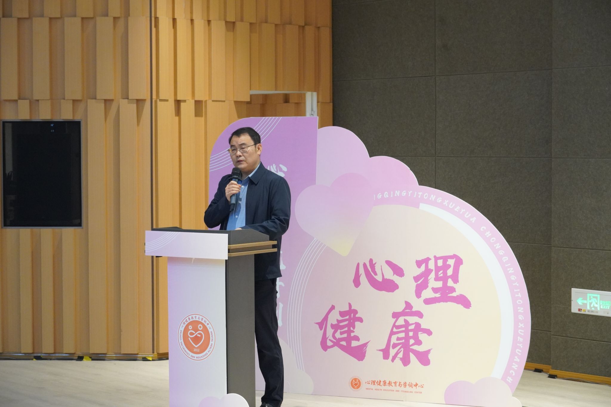 政府督导专员、党委书记何先刚在开班仪式上以"国之大者"的战略视野,系统阐释心理健康教育工作的重要性。他援引《重庆市高校学生心理健康工作指南》核心要义,强调要将心理育人深度融入"三全育人"大格局,要求全体辅导员在思想引领、学业指导、生活关怀中全方位渗透心理健康教育要素。特别提出要建立"异常心理识别-危机干预-跟踪服务"全链条工作机制,实现心理服务覆盖全体学生的目标。