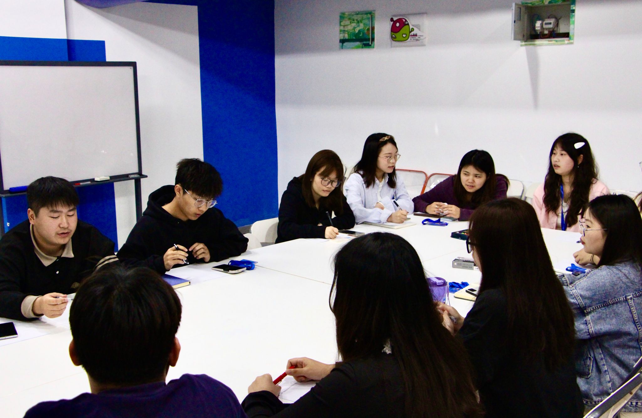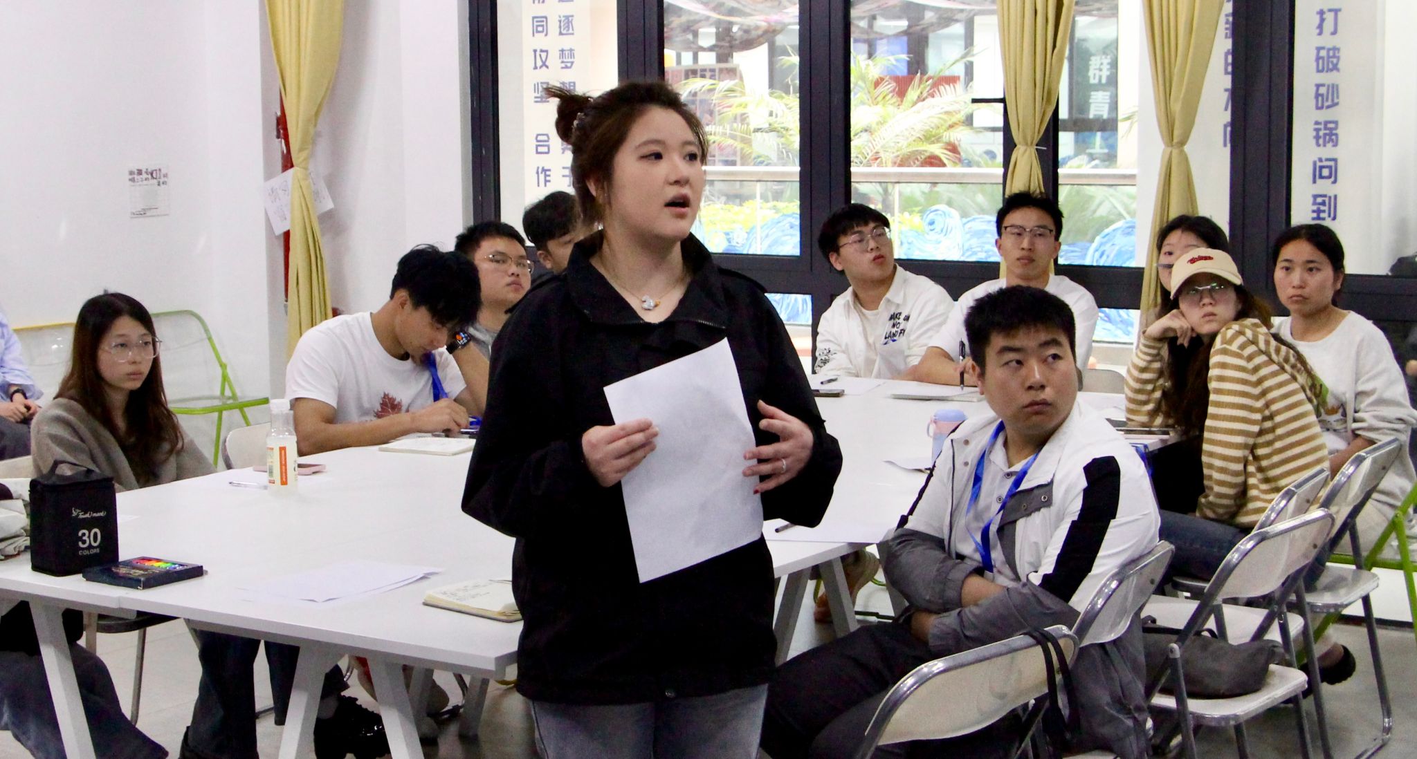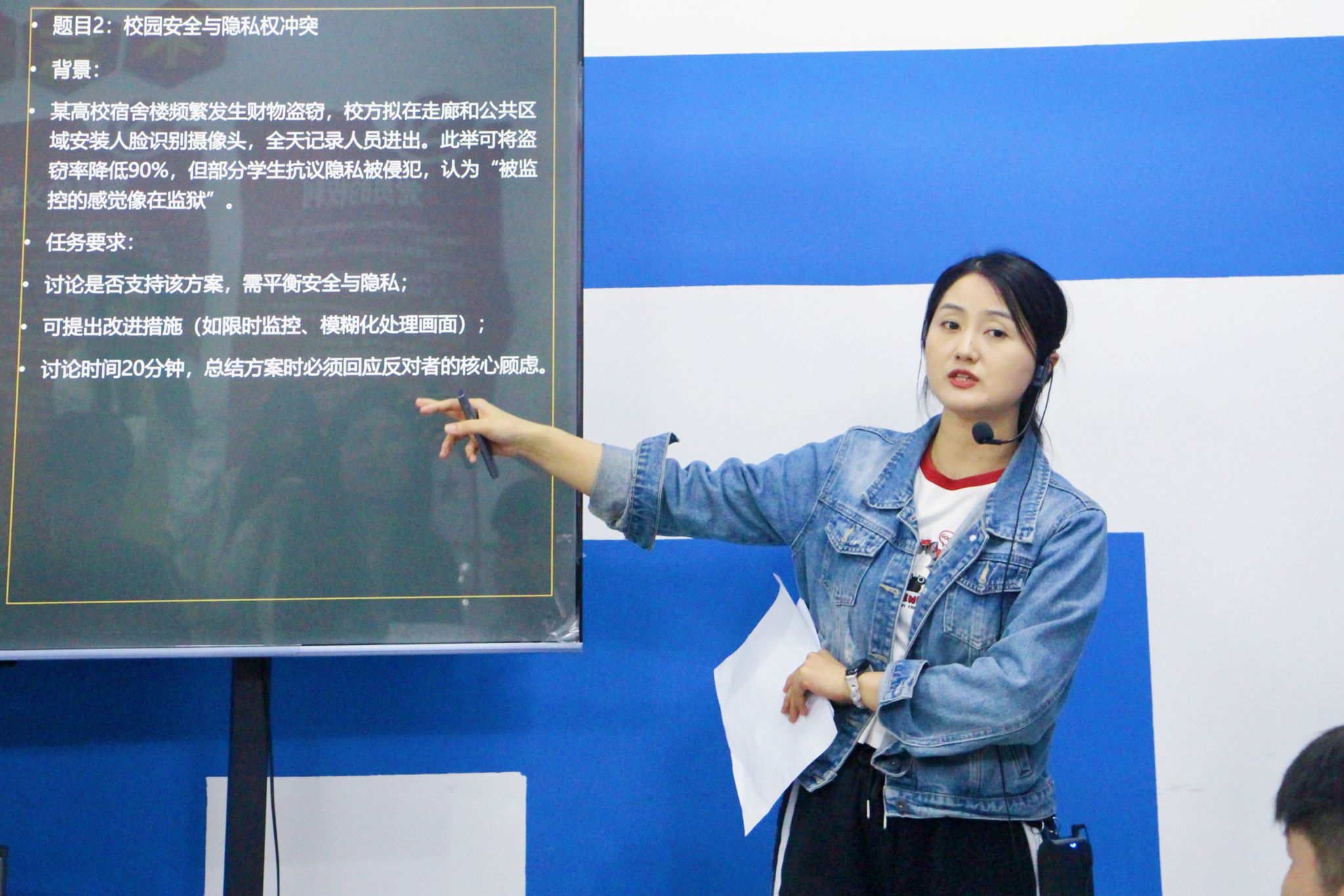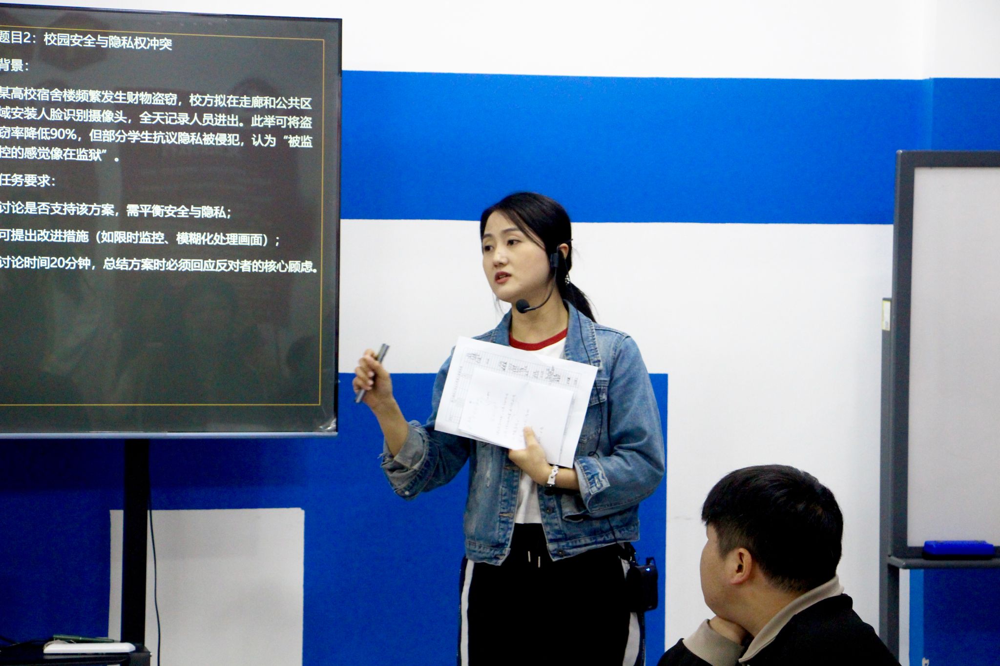 随后的实践环节,同学们展开了无领导小组讨论模拟演练。活动围绕“地震灾害救援优先级排序”和“校园安全与隐私权平衡”两大典型议题进行,参与者被分为两个小组深入探讨。讨论期间,各小组思维碰撞激烈,面对不同情境,同学们相继提出分级响应机制、多方利益协调等创新性解决方案,充分展现出批判性思维与应变能力。全程观察后,陈老师对同学们的表现给予了点评,肯定了主动引导讨论的同学所展现出的领导潜质,同时建议部分同学在表达时注意逻辑层次;表扬了善于倾听的同学所体现的团队意识,也指出应适时表达自身观点;对于提出质疑的同学,指导其如何以建设性方式推动讨论。这些针对性建议,使同学们对无领导小组讨论的考察要点有了更为深刻的理解。