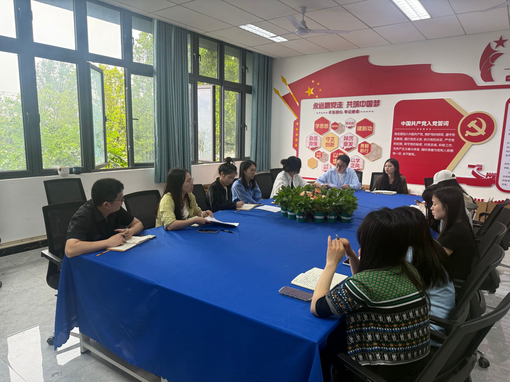 研读会上,辅导员盘如秀详细解读了方案中的重点任务、核心要点及工作思路、目标要求。方案聚焦校风学风优化、学术道德规范、课堂教学质量提升及书香校园建设四大维度,明确严守学术规范、强化课堂监督、推进阅读育人等举措,构建了长效学风建设机制。全体辅导员们认真聆听,不时记录要点,并就方案中的重点工作展开讨论。