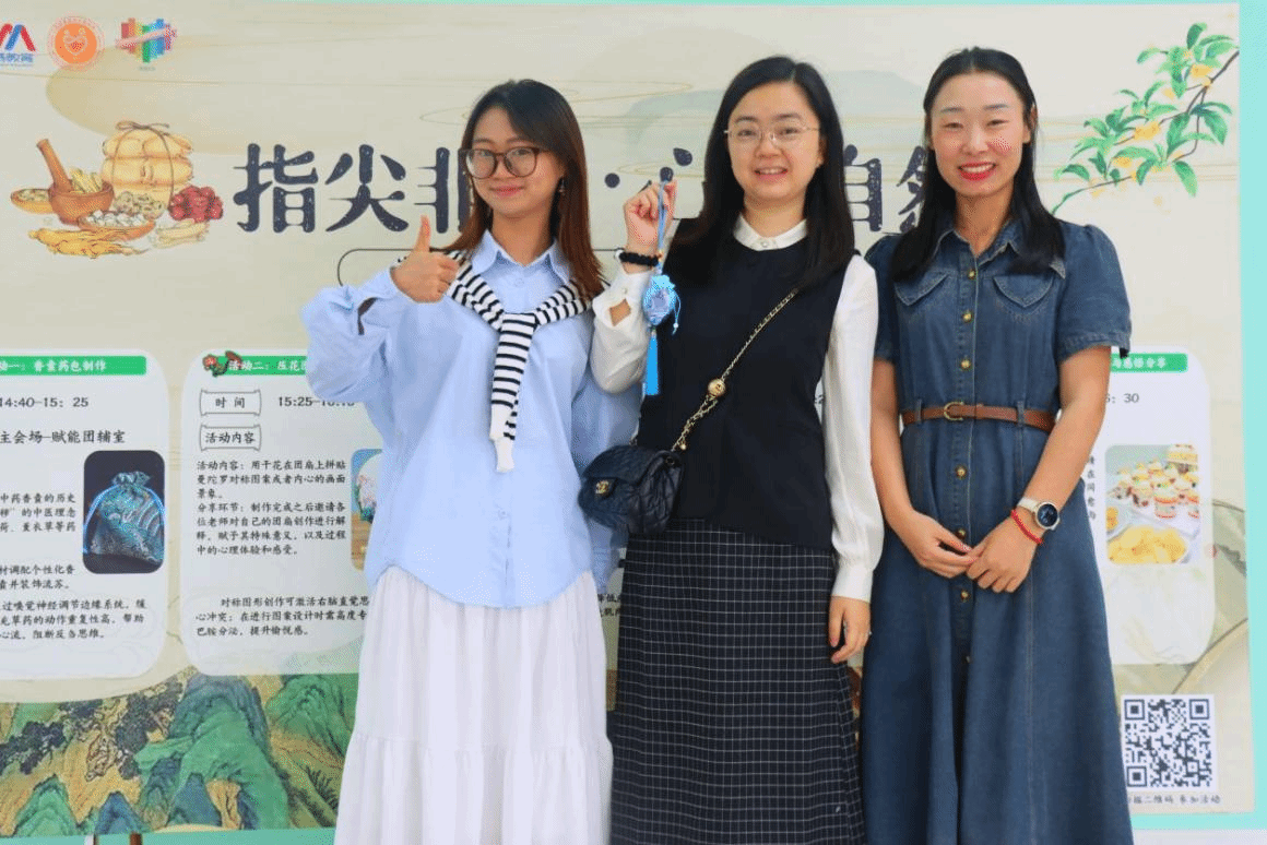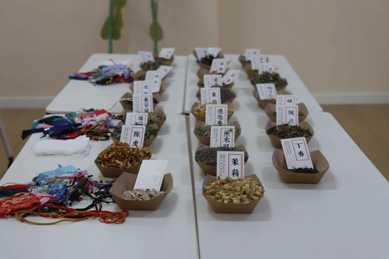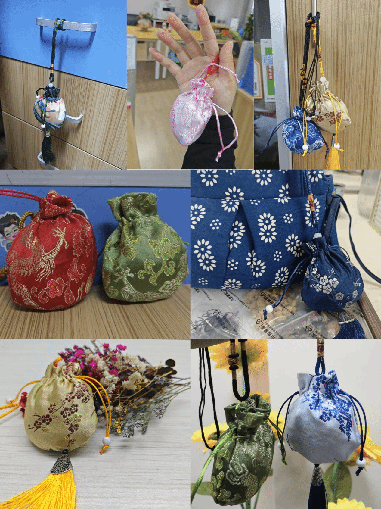 讲座过程中,梅主任运用其丰富的临床经验为在场的老师们解答中医养生相关问题,更指出,当人们遇到了严重心理困扰时,可以将中医技术与心理疗法相结合,发挥更大疗愈效果。随后,教师们按需挑选药材,制作个性化香囊。在抓取、研磨、填充的过程中,既是非遗技艺的传承,更蕴藏着身心疗愈的独特智慧,芳香分子调节情绪,重复性动作调动五感,在触摸嗅闻间实现身心舒缓与正念修行。