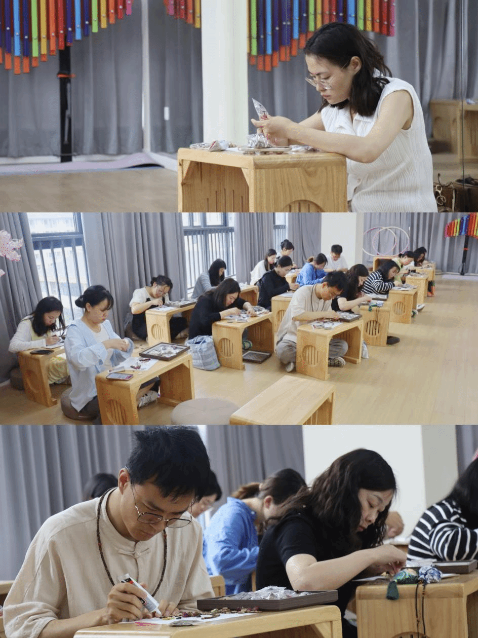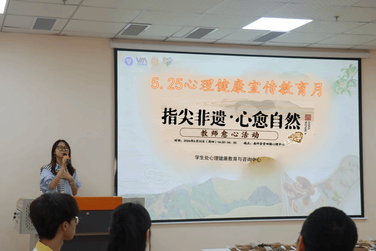 非遗文化作为中华民族的精神瑰宝,承载着千年文明的智慧结晶,蕴含着丰富的文化价值与艺术魅力。为促进教师身心健康,丰富校园文化生活,学生处心理健康教育与咨询中心于2025年5月15日14:30开展“指尖非遗,心愈自然”教师愈心活动,以非遗文化为载体,引导教师们在专注创作过程中释放压力,沉浸式感受心流状态。此次活动由心理中心专职教师李东芹老师主持。