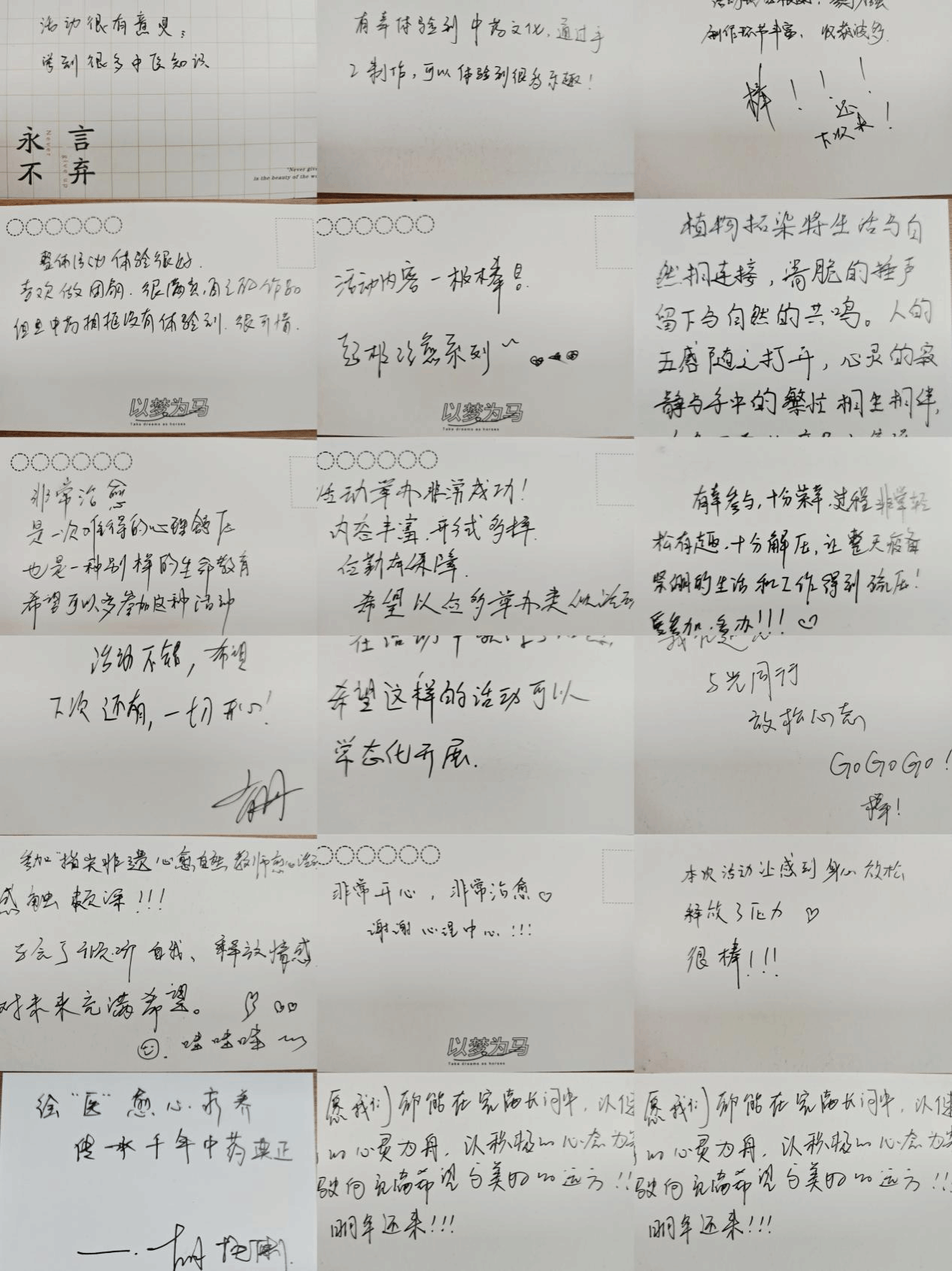 此次“指尖非遗,心愈自然”教师愈心活动圆满结束,这场传统非遗文化与情感滋养交织的沉浸式心理体验,不仅助力教师实现身心的和谐平衡,更为教育事业注入源源不断的精神动能,赋能教师以更丰盈的心灵、更饱满的热情投入育人工作中,在塑造完满人格、提升职业幸福感的道路上继续前行!未来心理中心也会不断创新活动形式,守护全校师生心理健康!