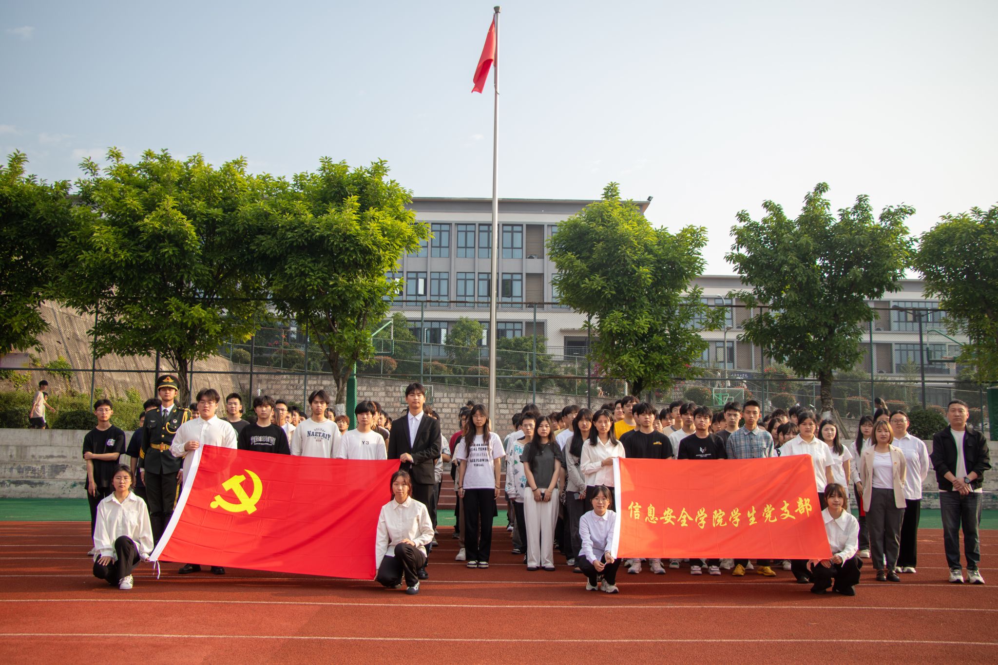 学生党员代表何珅结合专业使命发表演讲。他立足全球网络攻击频发、数据泄露频现的现实挑战,强调信息安全学子“既是网络空间建设者,更是国家安全守护者”的双重角色。他以学院党支部开展的科技伦理教育、网络安全竞赛实践为例,呼吁全体同学:“仰望国旗时,请铭记我们的专业知识不仅是个人发展的资本,更是保卫国家安全的利剑。让我们以青春之我筑牢数字长城,用硬核技术兑现‘强国有我’的誓言!”铿锵誓言引发全场共鸣。