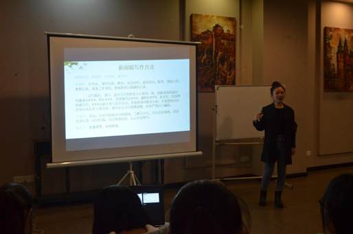 首先,周真霜老师进行了简单的自我介绍,为大家说明了新闻稿的重要性,它对一个活动能否圆满完成起着决定性作用。接着,详细为大家讲解了新闻稿的基本框架,从三个方面介绍新闻稿的写法,并向大家分享到一些写新闻稿的技巧。