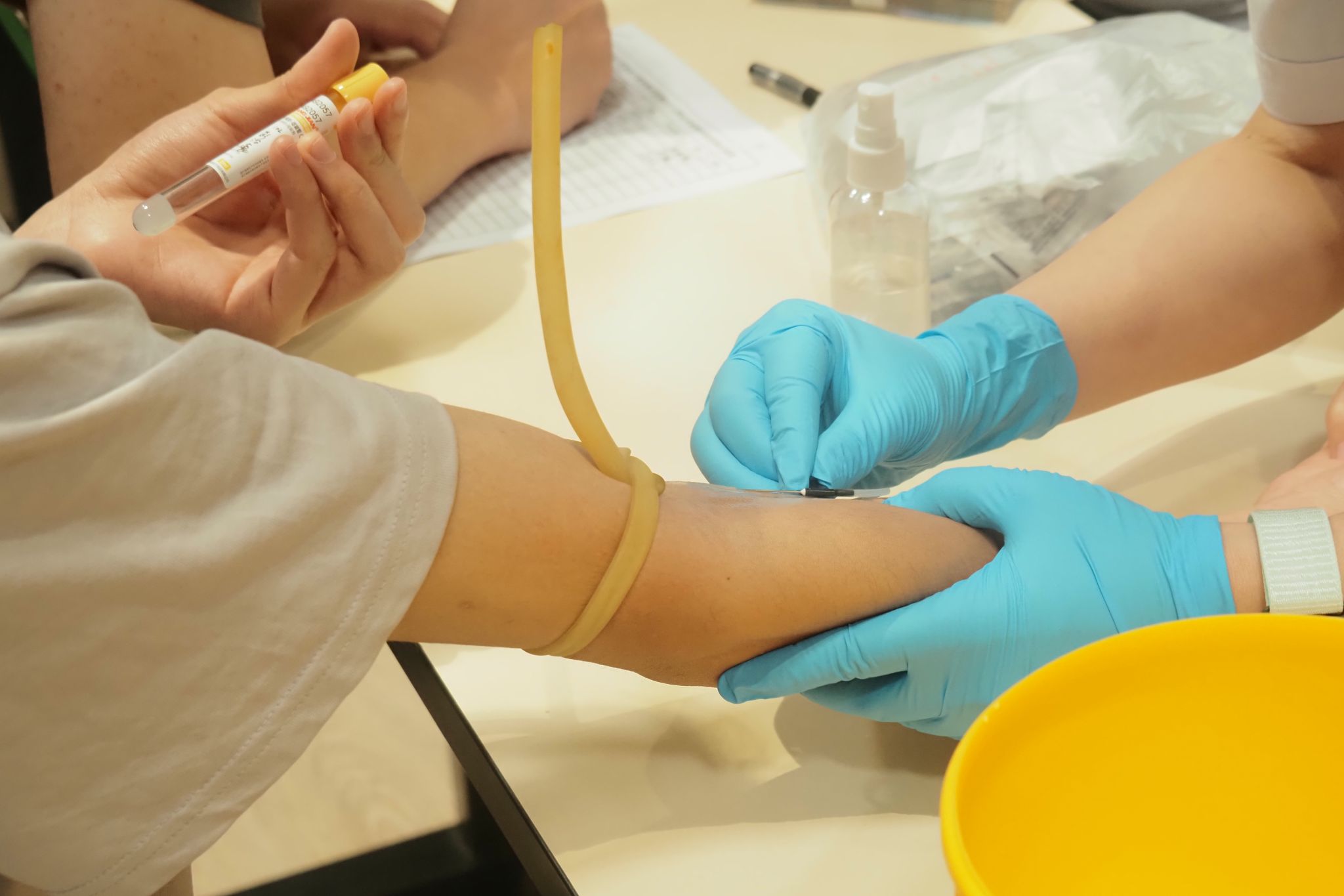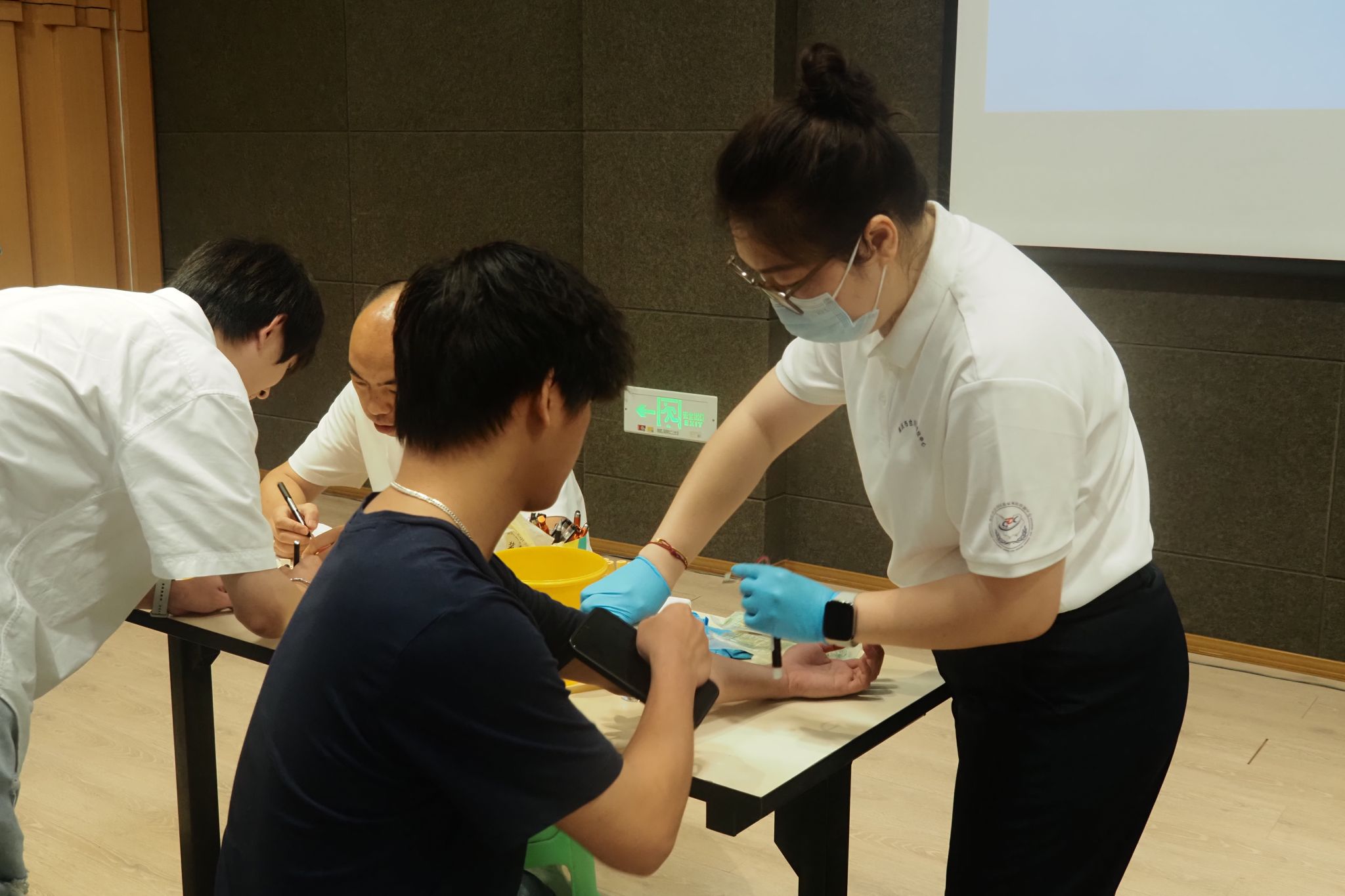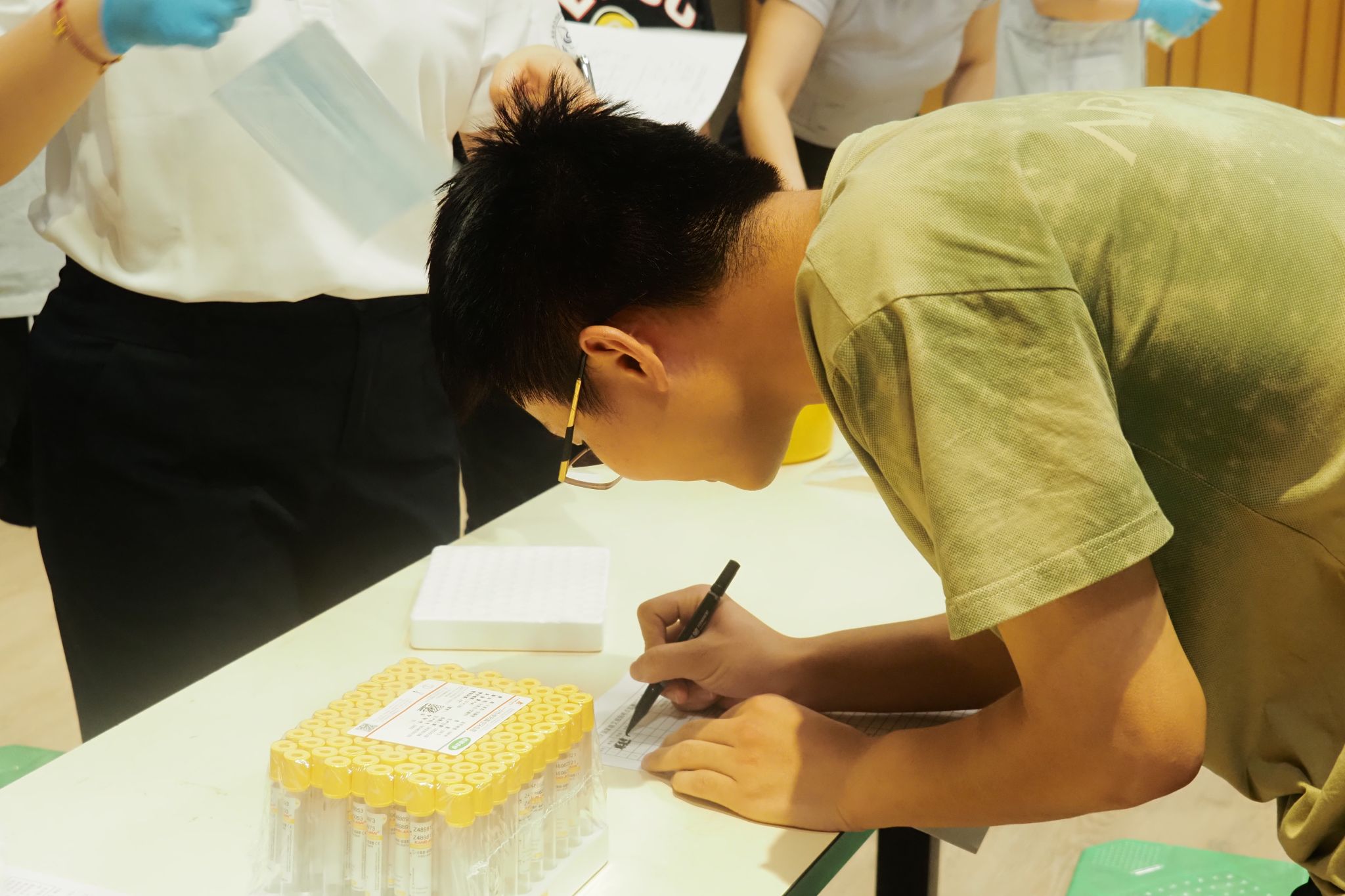 在抽血检测环节,合川区疾控中心专业医护人员严格按照规范操作,确保检测过程安全、卫生。同学们积极配合,依次完成信息登记、样本采集等工作。